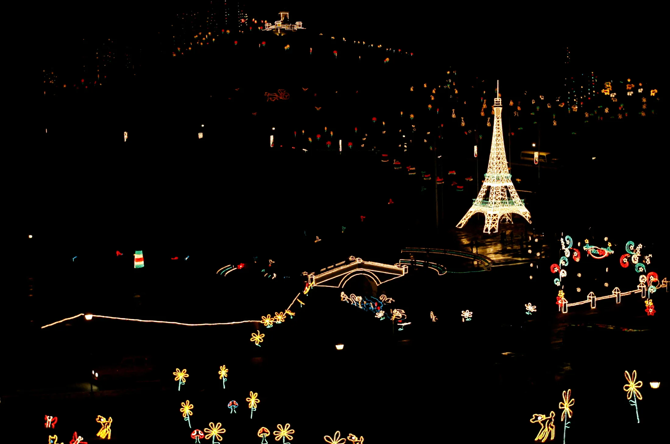 Colombia: A replical of Paris' Eiffel Tower is lit up for Christmas at Puente de Bocaya in Tunja, Colombia December 13, 2007. (Photo by Daniel Munoz/Reuters)
