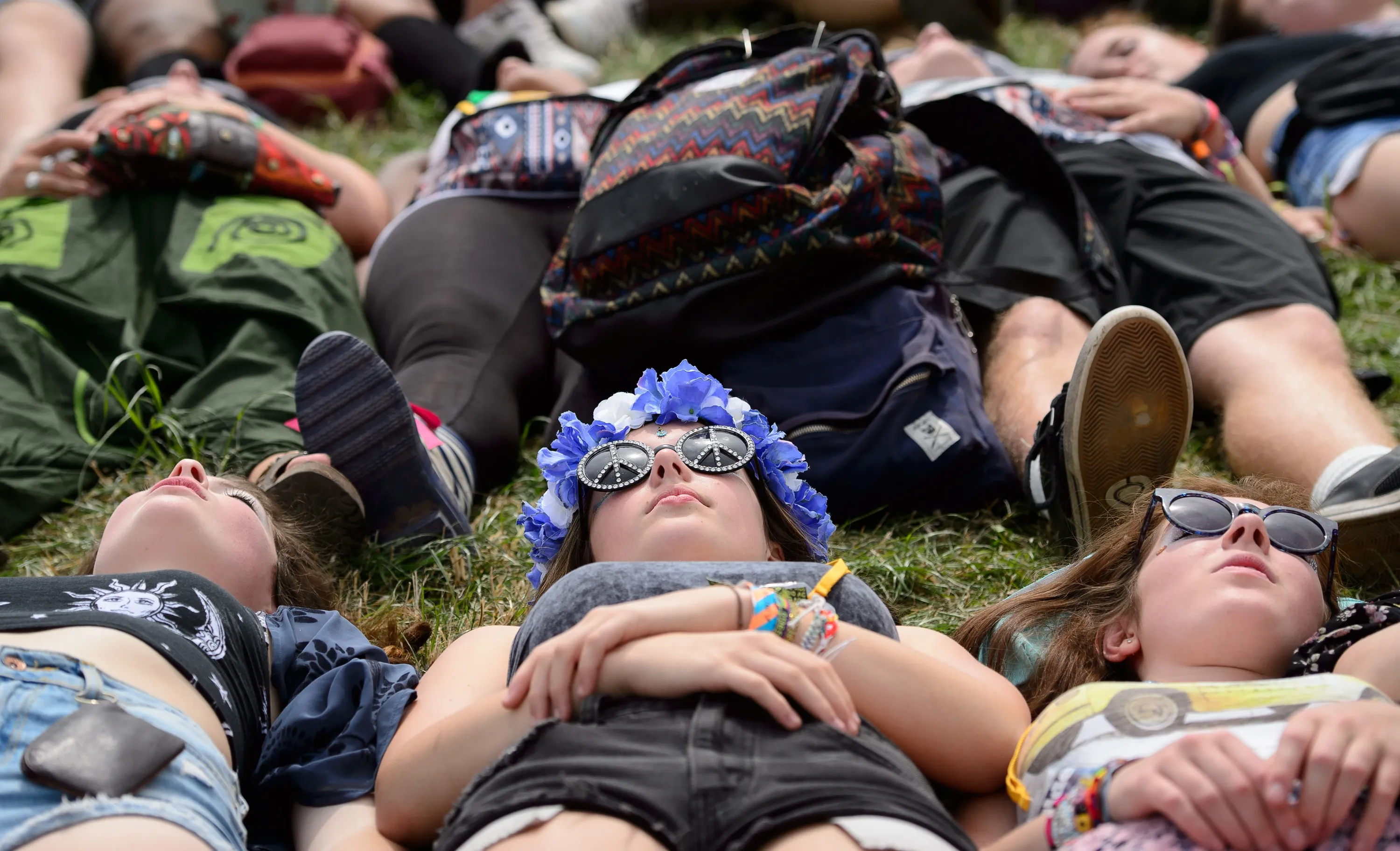 Festival goers take part in an open-air yoga session in the Green Fields, as revellers gather ahead of this weekends Glastonbury Festival of Music and Performing Arts on Worthy Farm near Pilton in Somerset, south west England, on June 26, 2014. (Photo by Leon Neal/AFP Photo)