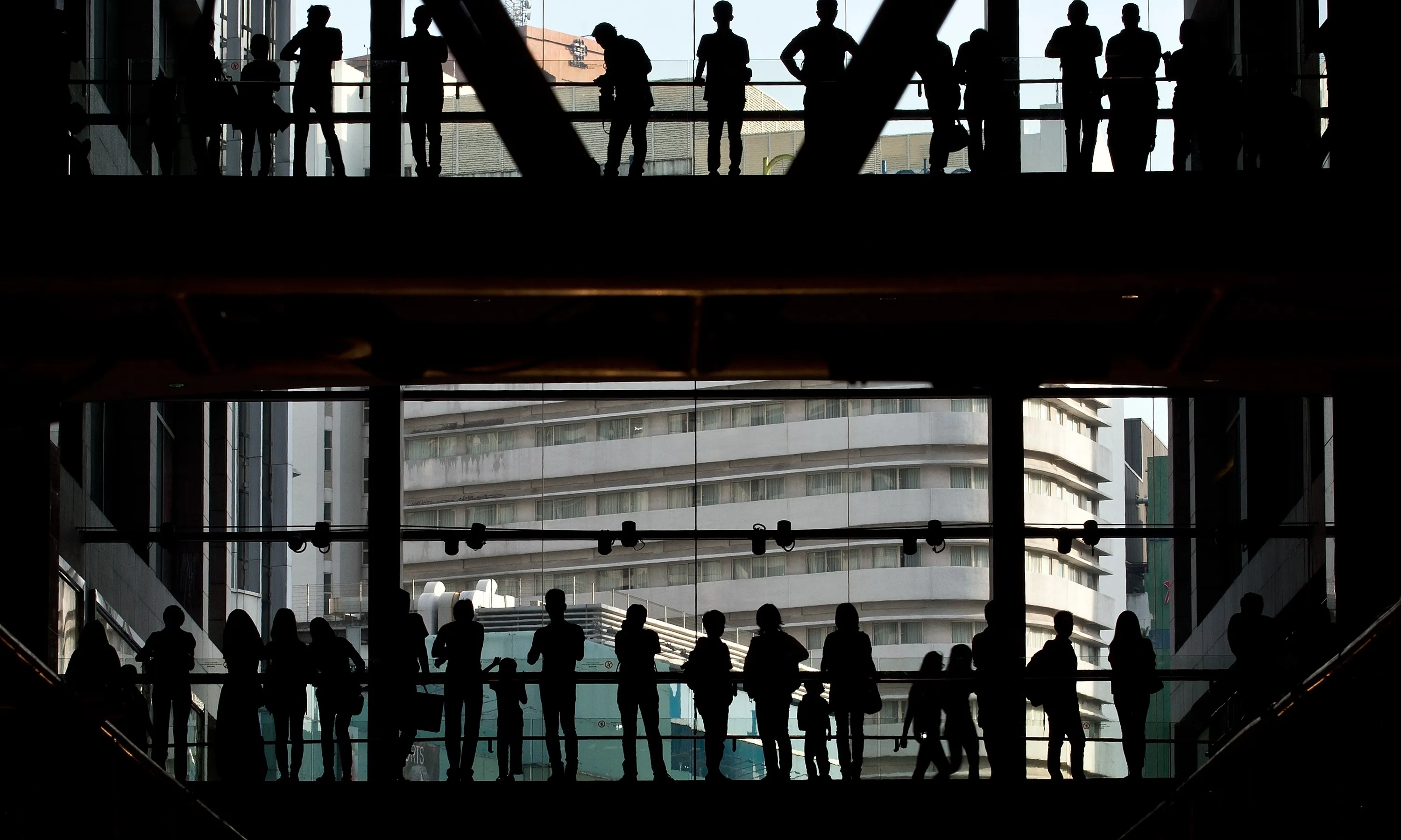 Spectators are silhoutted as they watch the Islamic Fashion Festival during 2014 Malaysia International Fashion Week in Kuala Lumpur on June 20, 2014. (Photo by Manan Vatsyayana/AFP Photo)