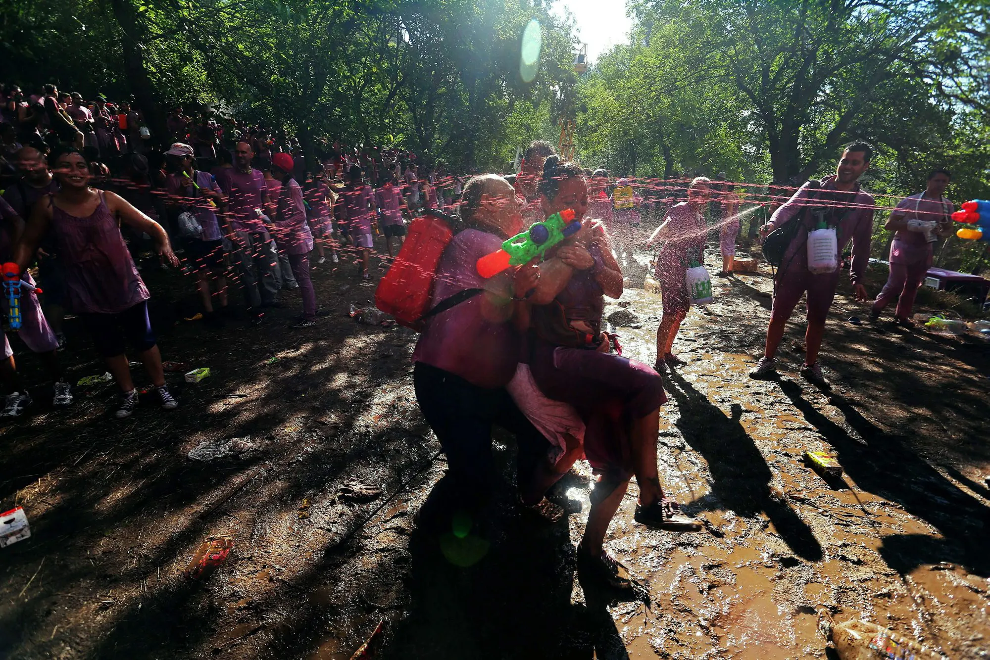 Revelers spray wine on each other as they take part in the “Battle of Wine” (La batalla del vino de Haro), a wine fight, during the Haro Wine Festival, in Haro, in the northern province of La Rioja on June 29, 2014. More than nine thousand locals and tourists threw around 130.000 litres of wine at each other during the Haro Wine Festival, according to local media. (Photo by Cesar Manso/AFP Photo)