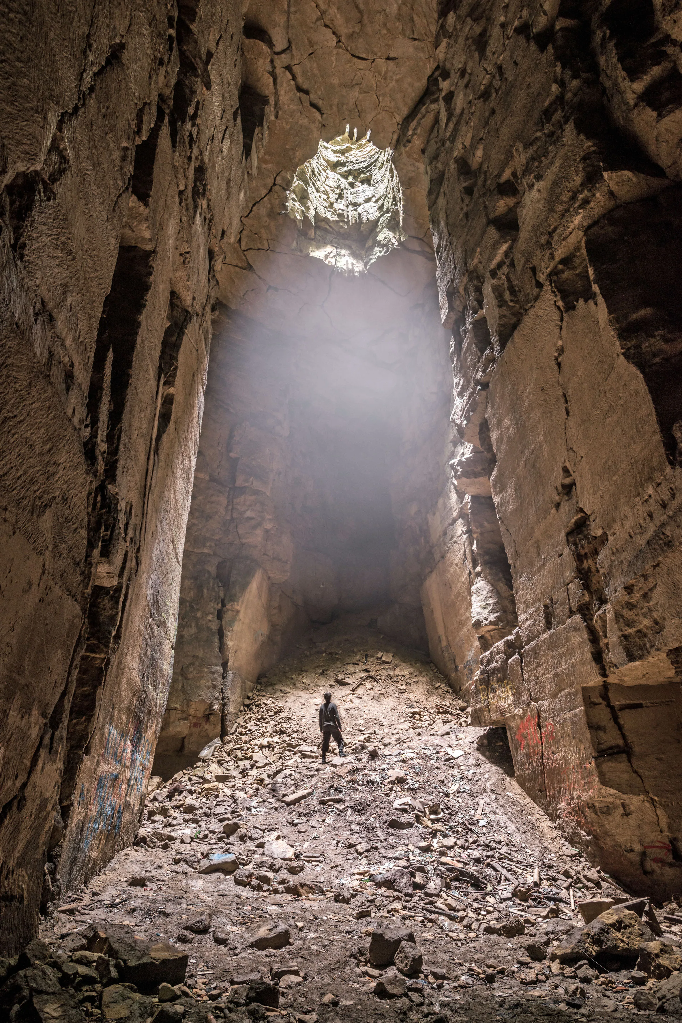 This incredible picture was taken at the Box Freestone Mine, in Wiltshire. Mike revealed that even experienced map readers would struggle to navigate their way around the seemingly endless tunnels that he and his friends visit. (Photo by Mike Deere/Caters News)