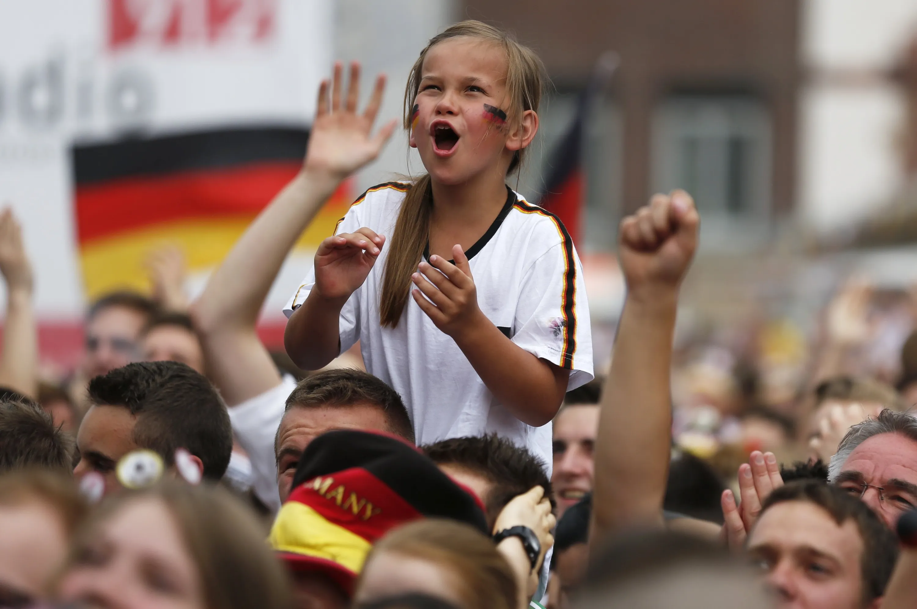 A girl celebrates a goal by Germany at a public viewing of the 2014 World Cup quarter-finals match between Germany and France in Dortmund July 4, 2014. (Photo by Ina Fassbender/Reuters)