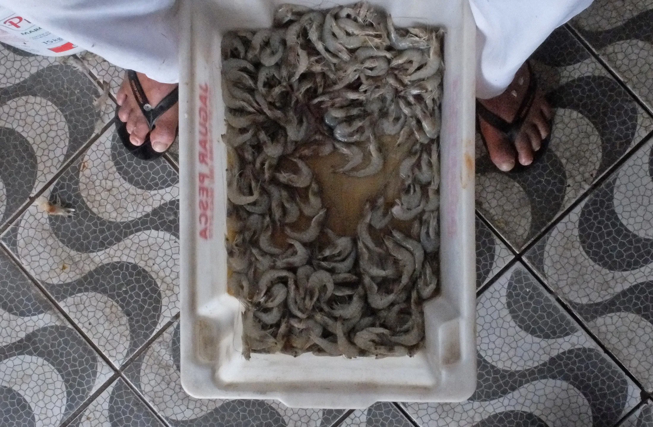A fisherman cleans shrimps at a fishmarket in Olinda June 27, 2014. In a project called “On The Sidelines” Reuters photographers share pictures showing their own quirky and creative view of the 2014 World Cup in Brazil. (Photo by Yves Herman/Reuters)