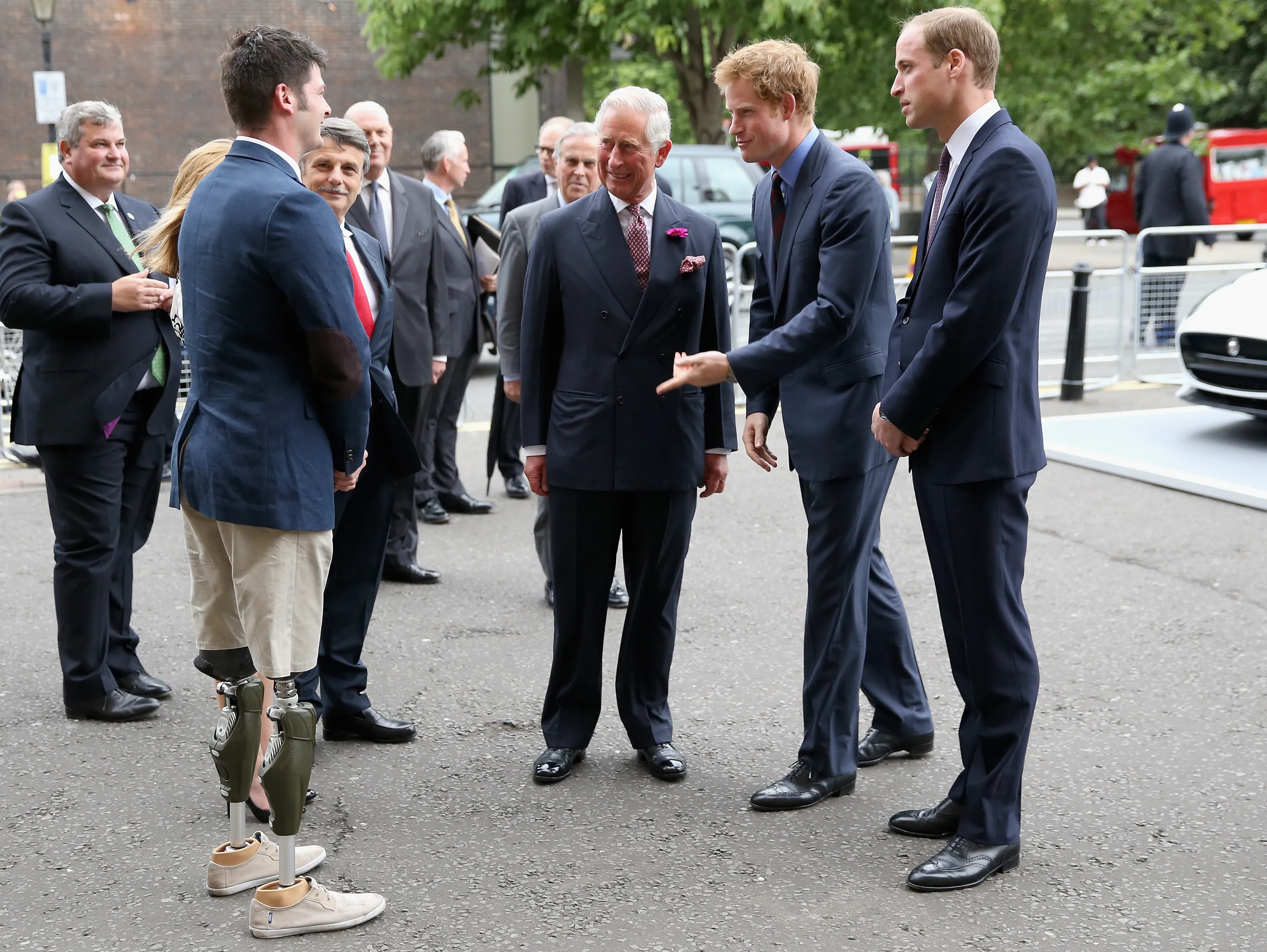 Prince Charles, Prince of Wales, Prince William, Duke of Cambridge and Prince Harry chat to Captain Anthony Harris, the founder Race2Recovery as they attend the BITC Annual Responsible Business Awards Gala at Royal Albert Hall on July 8, 2014 in London, England. (Photo by Chris Jackson/Getty Images)