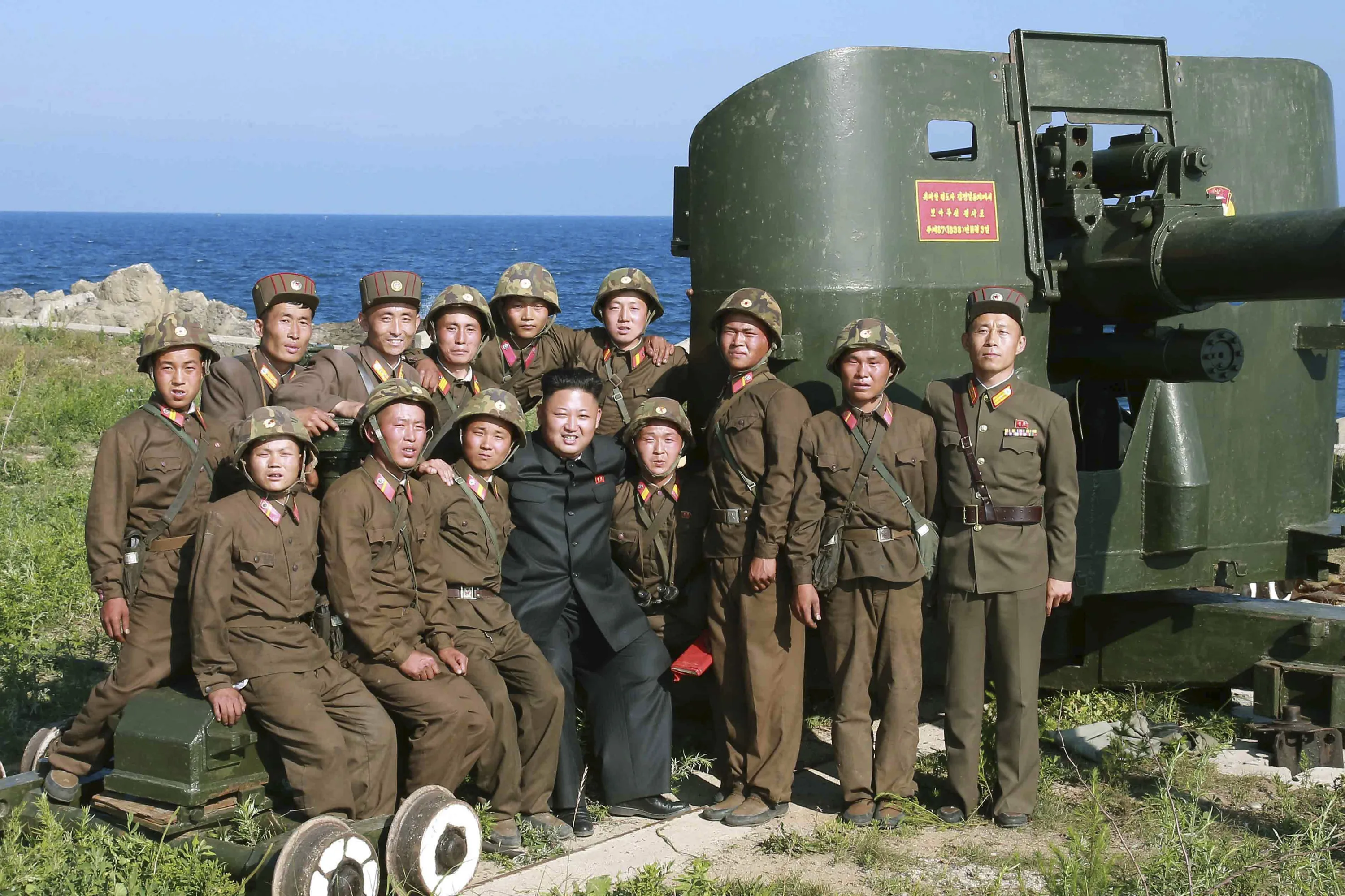North Korean leader Kim Jong Un poses with soldiers during an inspection of the defence detachment on Ung Islet, which is defending an outpost in the East Sea of Korea, in this undated photo released by North Korea's Korean Central News Agency (KCNA) in Pyongyang July 7, 2014. (Photo by Reuters/KCNA)
