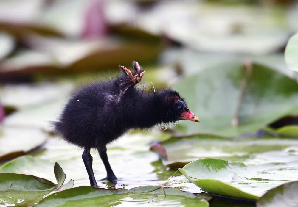 A picture made available on July 7, 2014 shows a newly hatched moorhen chick at Gwangokji-pond in Shiheung City, Gyeonggi province, South Korea, July 6, 2014. (Photo by Kim Jae-Sun/EPA)