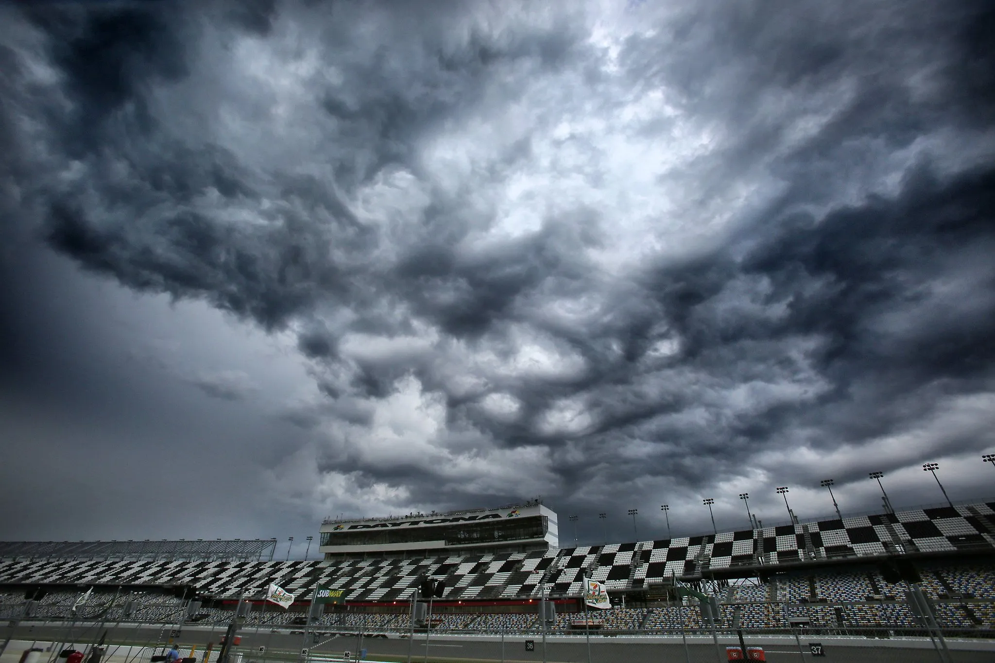 Poor weather and high winds forced the cancellation of Sprint Cup practice at Daytona International Speedway on Thursday, July 3, 2014, in Daytona Beach, Fla. (Photo by Joe Burbank/Orlando Sentinel/MCT)