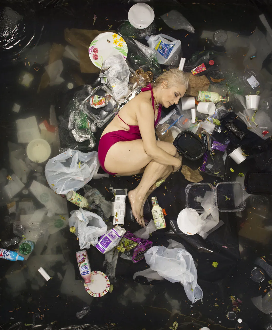 Susan surrounded by seven days of her own rubbish in Pasadena, California. If you've never thought about how much rubbish you throw away an honest photographic series will open your eyes. Men, women, couples and families with young children have been photographed lying on their backs surrounded by a week's worth of their own rubbish – from old cartons of milk, used nappies and even tampons. The startling series “Seven Days of Garbage” by Californian photographer Gregg Segal is an unforgettable reminder of the amount of waste a human collects in just seven days. (Photo by Gregg Segal/Barcroft Media)