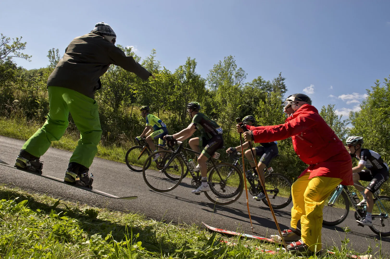 Disguised supporters cheer along the road as cyclists riding past during the 187.5 km eleventh stage of the 101st edition of the Tour de France cycling race on July 16, 2014 between Besancon and Oyonnax, eastern France. (Photo by Lionel Bonaventure/AFP Photo)