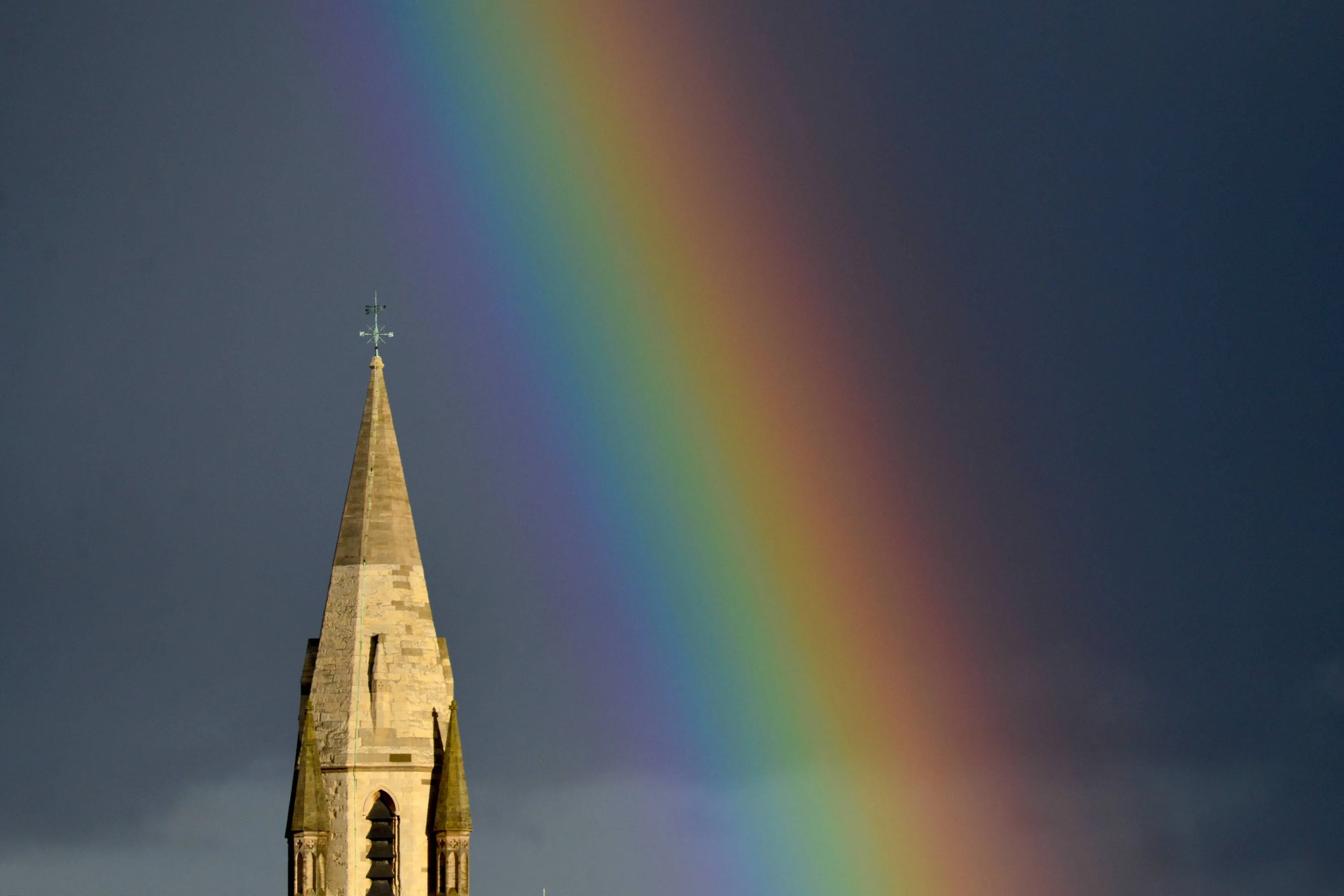 A rainbow above St Peter's church in Nottingham after a sudden downpour, on August 29, 2012. (Photo by Lewis Stickley/PA Wire)
