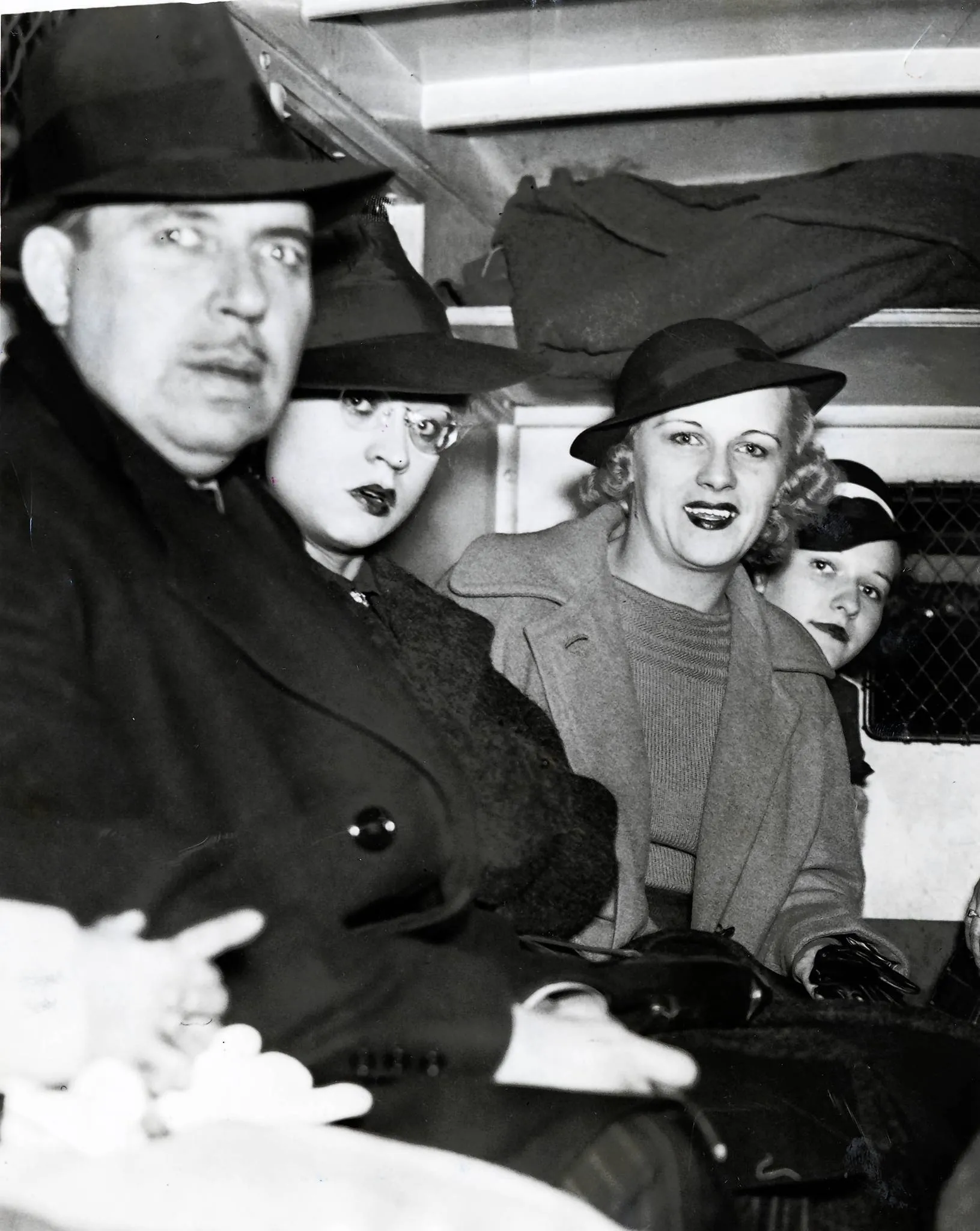 People arrested sit in back of a police wagon following a vice raid on the Rialto Theatre, October 17, 1937. Twenty-two women and 10 men were arrested in the surprise raid at the theater and charged with presenting or participating in indecent exhibitions. All arrested were released on $125 bail. In total 70 men and 45 women were arrested in the surprise raids across the city. (Photo by Chicago Tribune Historical Photo)