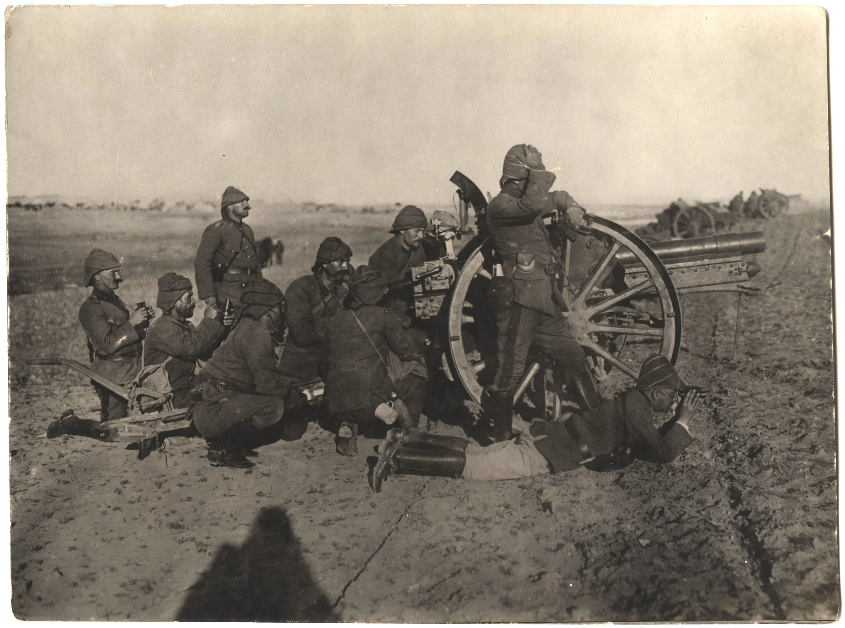 Turkish soldiers firing a large artillery gun. (Photo by Dr. P.A. Smithe/National World War I Museum, Kansas City, Mo.)