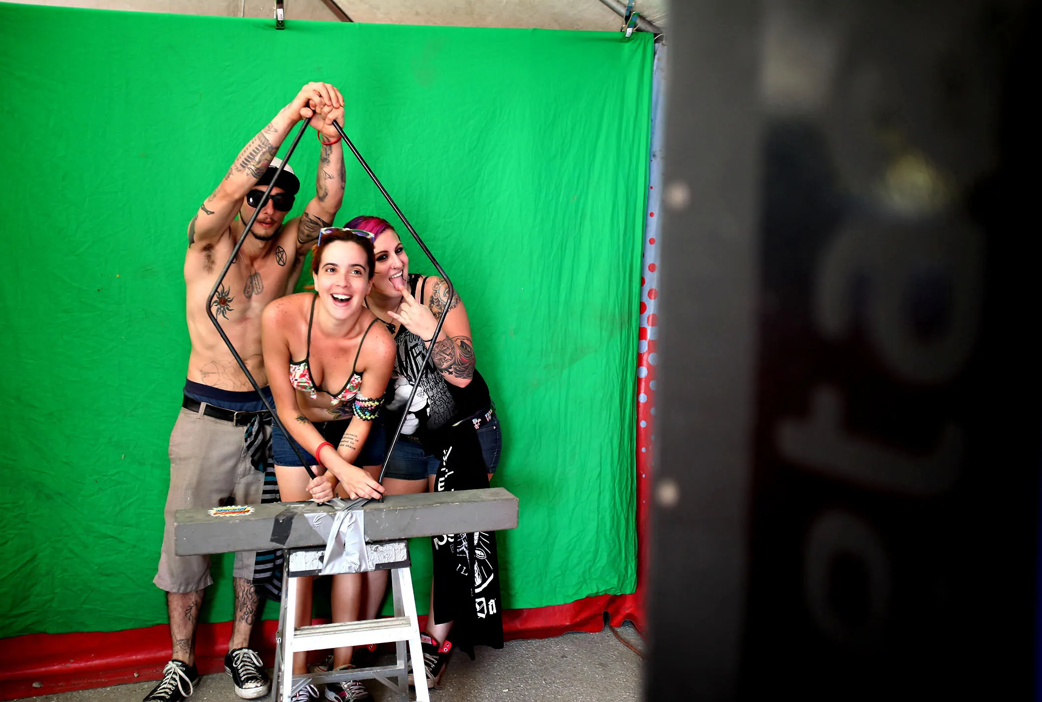 Fans have their picture taken in one of the promotion booths during the Vans Warped Tour at the Cruzan Amphitheatre in West Palm Beach on July 26, 2014. (Photo by Richard Graulich/The Palm Beach Post)