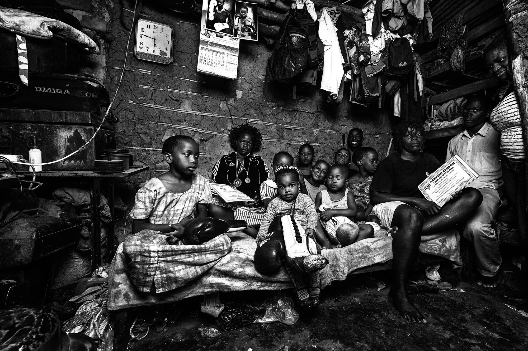 July 28, 2013 – Kampala, Uganda. Helene and Diana live with more than 25 relatives in 20 square meters with no windows, sharing the space with livestock, sleeping in bunk beds and on the floor. (Photo by Peter Bauza/ZUMA Press/VISUAL Press)