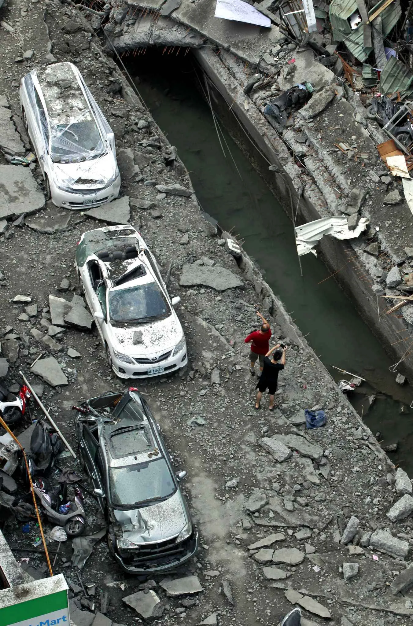 A rooftop view shows a street destroyed by a massive gas explosion in Kaohsiung, Taiwan, Friday, August 1, 2014. (Photo by Wally Santana/AP Photo)
