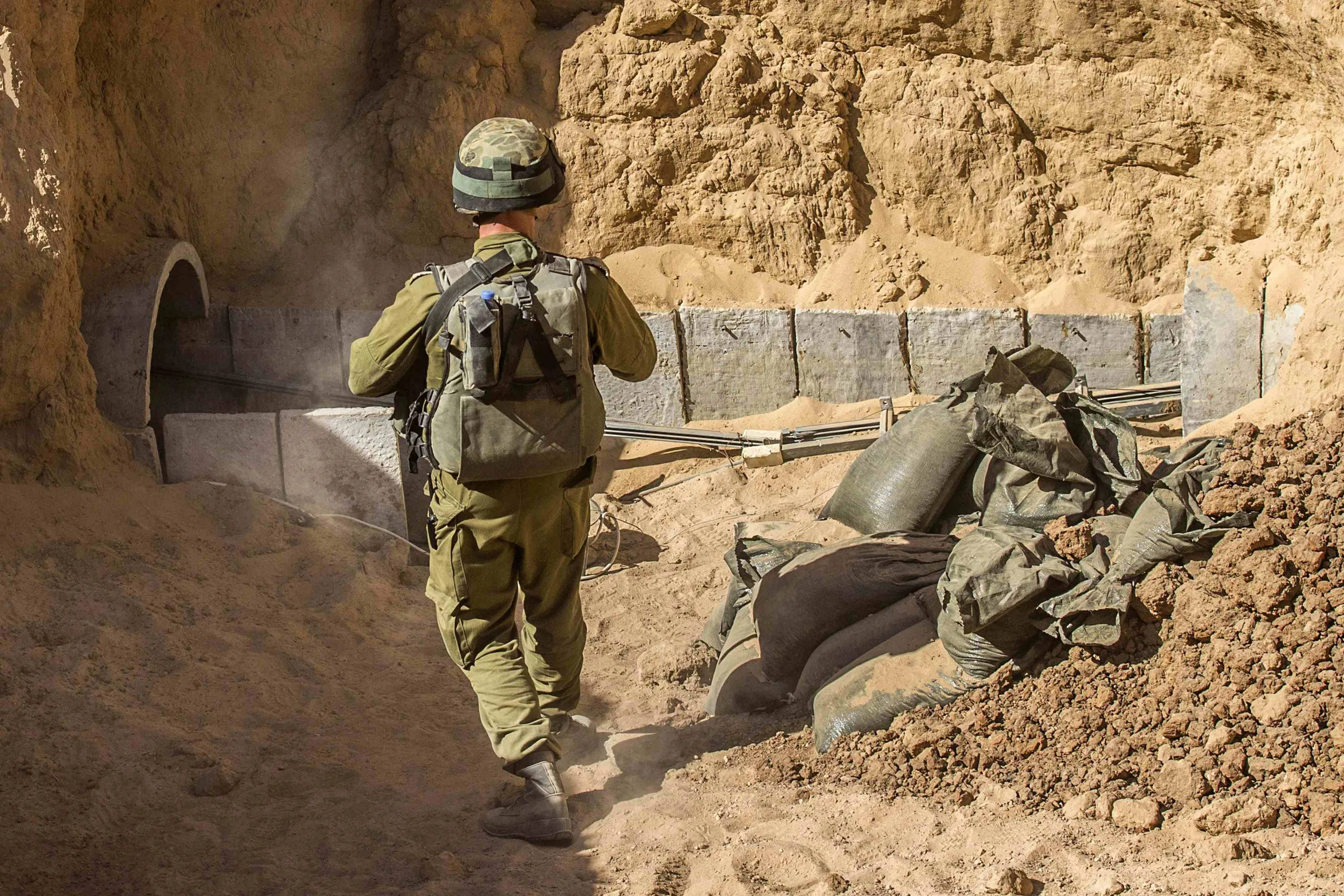 An Israeli army officer stands at the entrance of a tunnel said to be used by Palestinian militants for cross-border attacks, during an army organised tour for journalists on July 25, 2014. (Photo by Jack Guez/Reuters)