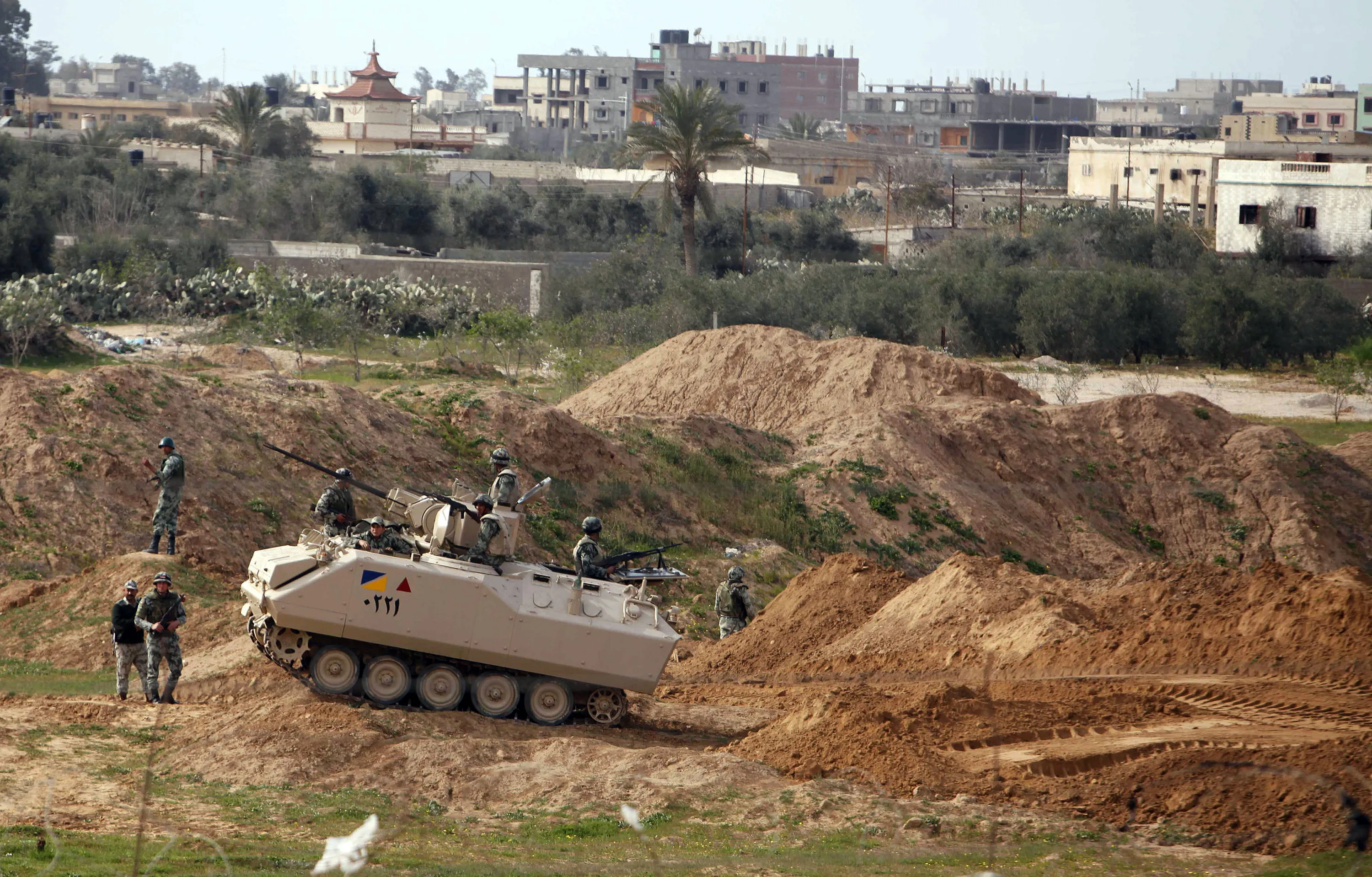 Egyptian soldiers stand guard outside smuggling tunnels beneath the Egyptian-Gaza border in Rafah, in the southern Gaza Strip February 19, 2013. (Photo by Ibraheem Abu Mustafa/Reuters)
