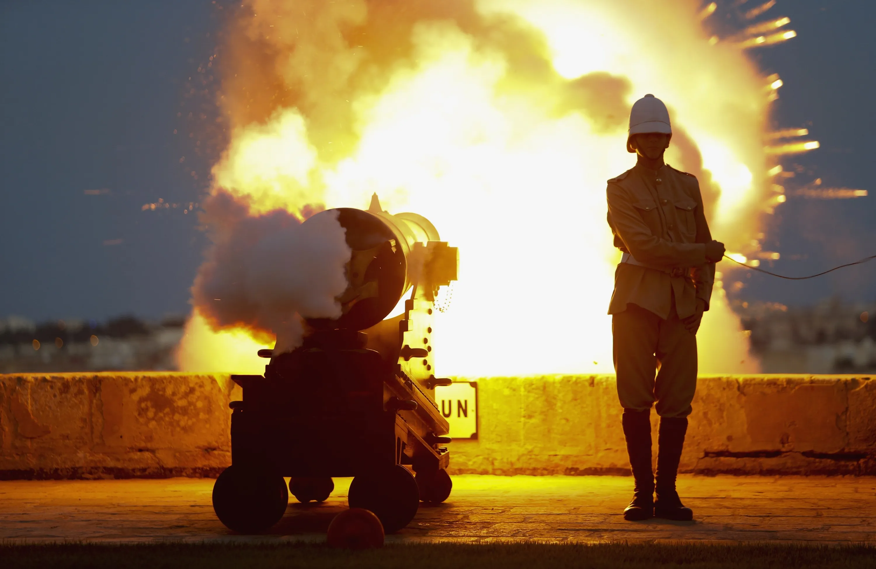 A National Heritage Trust historical reenactor in a Victorian-era Royal Malta Artillery uniform fires one of several cannons to mark the feast day of Saint John the Baptist, on the bastions of Valletta, in Malta, on June 23, 2014. (Photo by Darrin Zammit Lupi/Reuters)