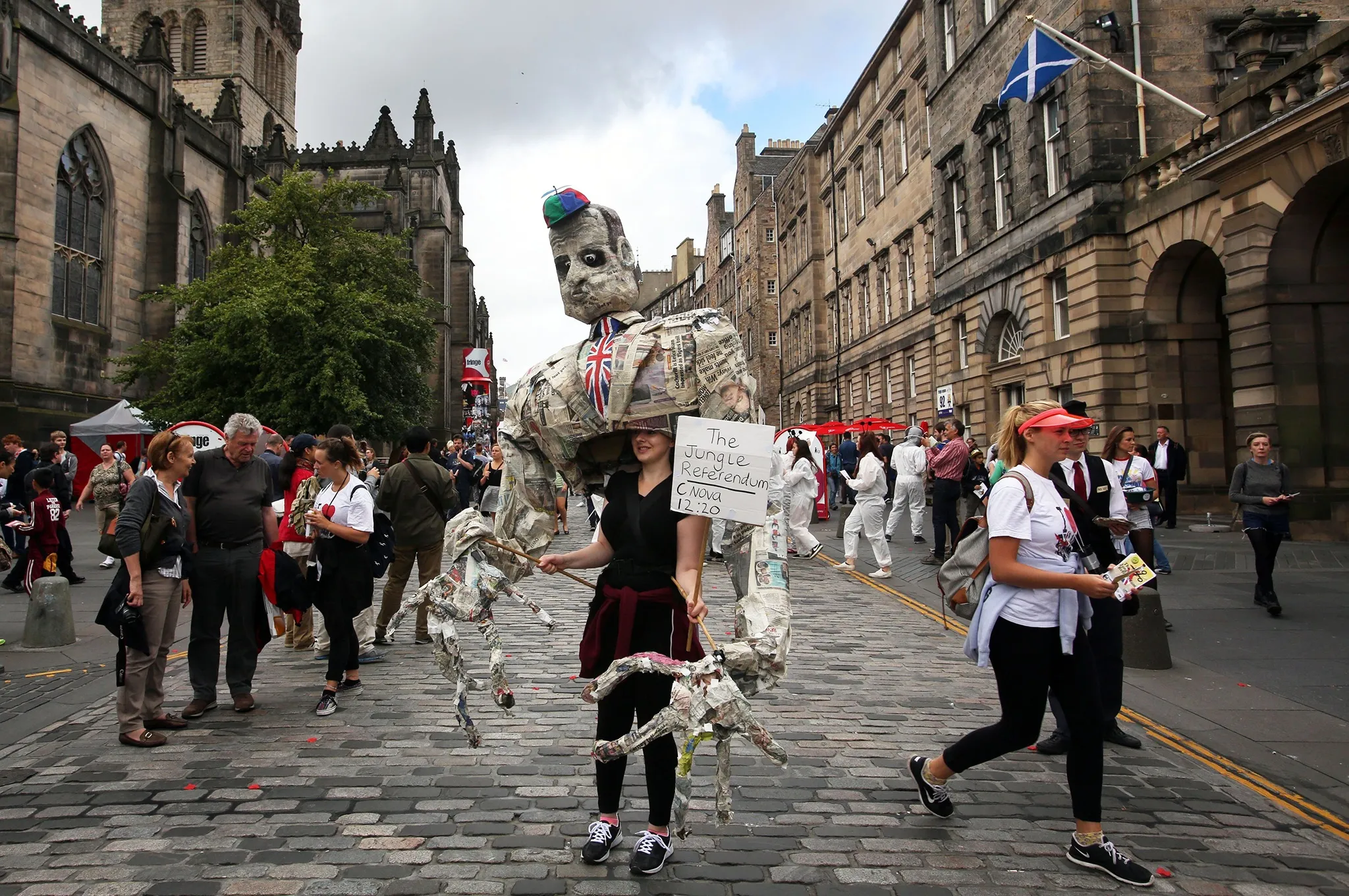 Edinburgh Festival acts play to the crowds on the Royal Mile, Edinburgh. (Photo by David Cheskin/PA Wire)