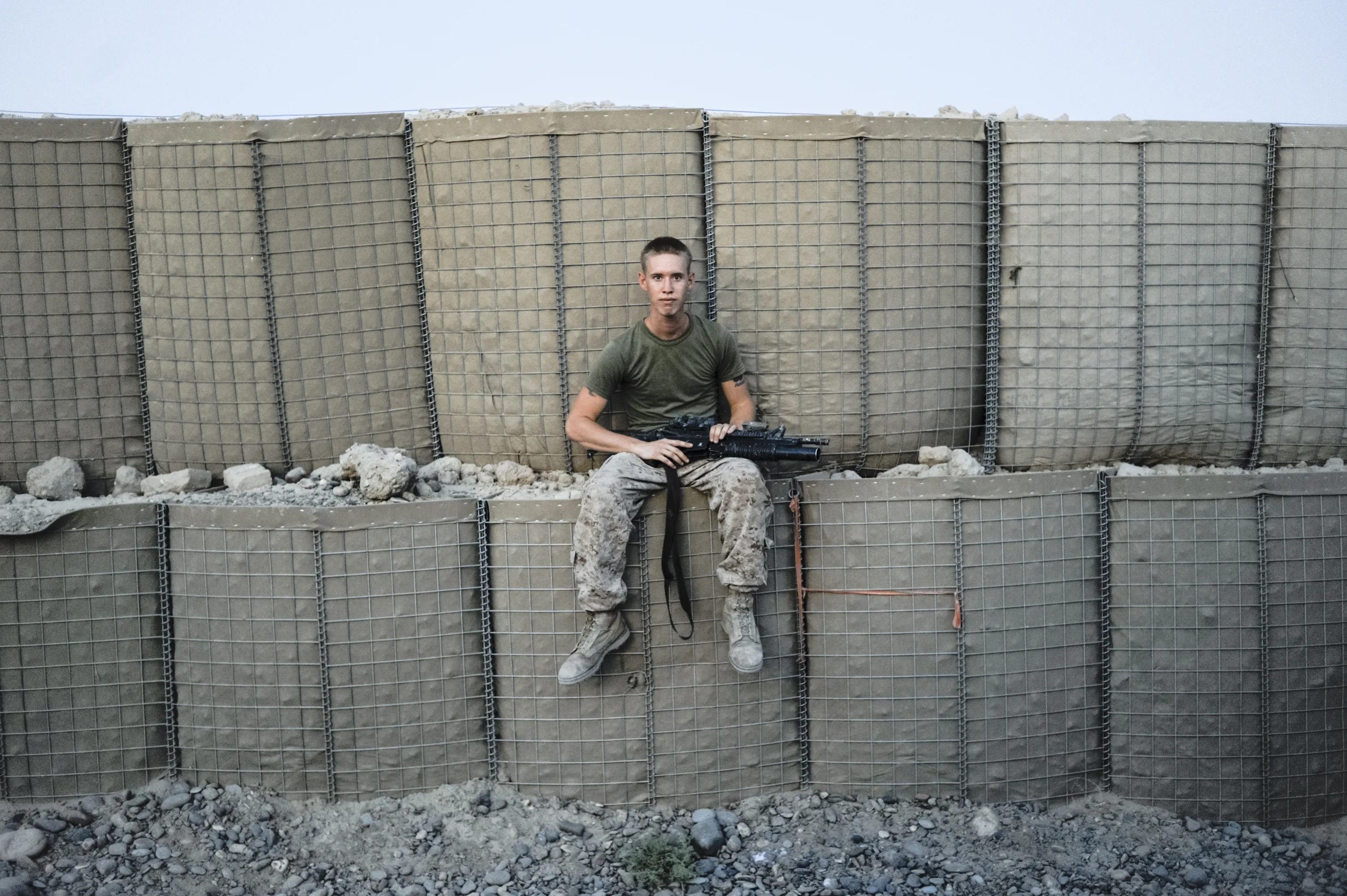 Van Agtmael began his first tour documenting the army at 24, the same age as many of the soldiers. A friend of this young Marine at FOB Delhi asked Van Agtmael if he wanted to see a picture that he'd drawn. It was of an angry pig with a giant penis dressed as a Marine, holding a machine gun. (Photo and caption by Van Agtmael/Harrison Jacobs/Magnum Photos)