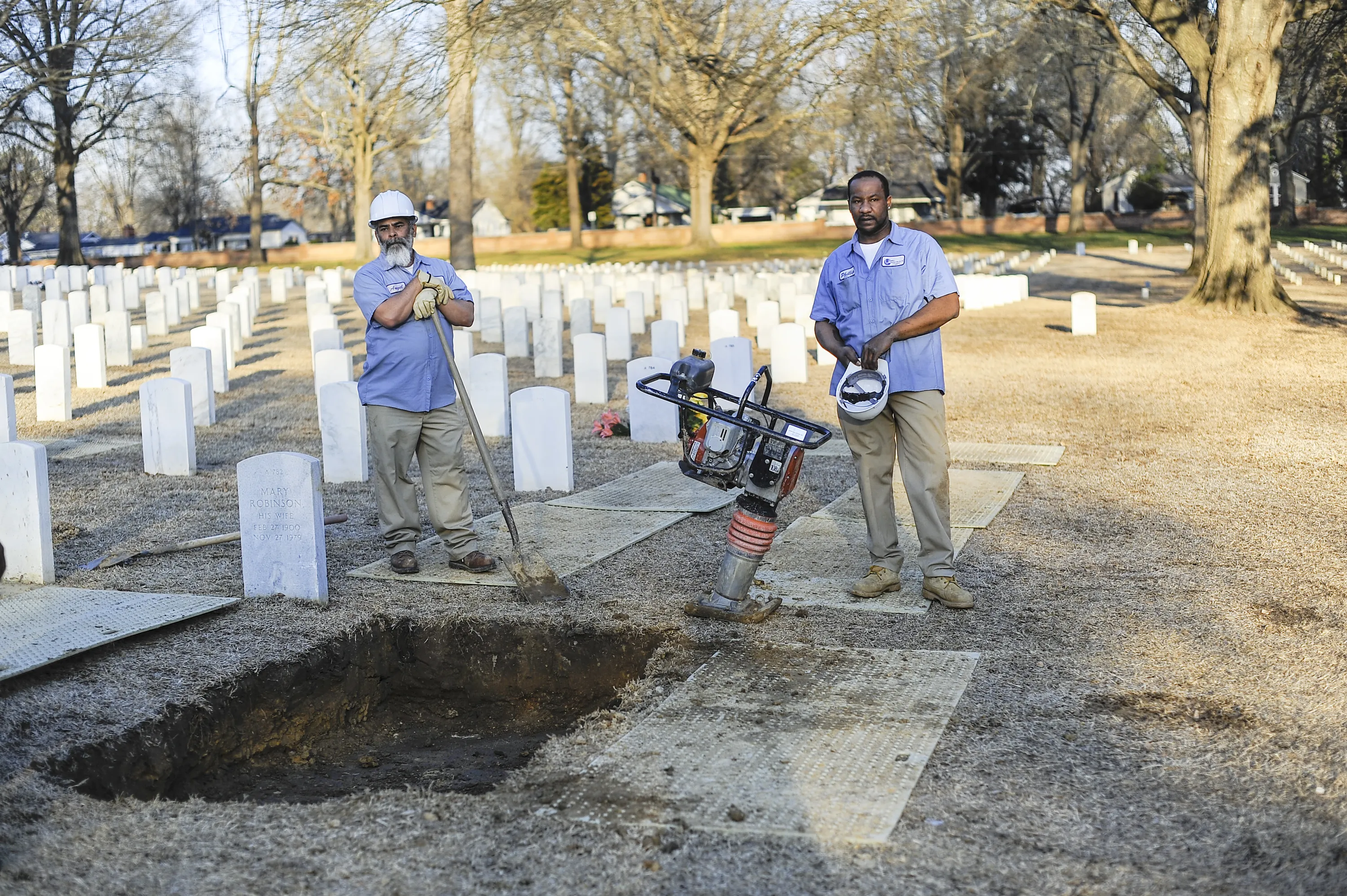 Ricketts was buried near his hometown at the Corinth National Cemetery. After his coffin was lowered in the ground, a small crew shoveled dirt over the grave, pounding it with a mechanical dirt-packer. (Photo and caption by Van Agtmael/Harrison Jacobs/Magnum Photos)