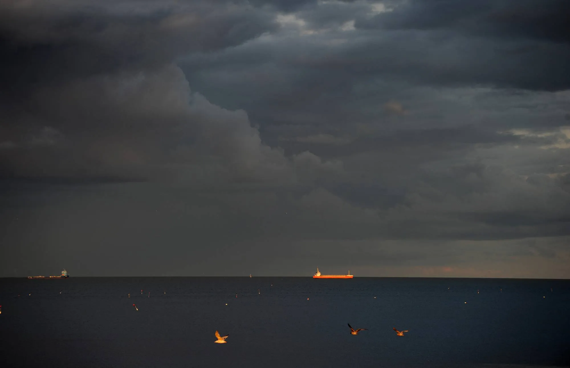 A ship gets ready to enter the River Tyne at sunset on July 28, 2014. (Photo by Owen Humphreys/PA Wire)
