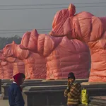 Elephant Statues Of BSP Party Symbol Covered Ah...
