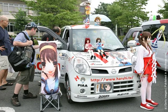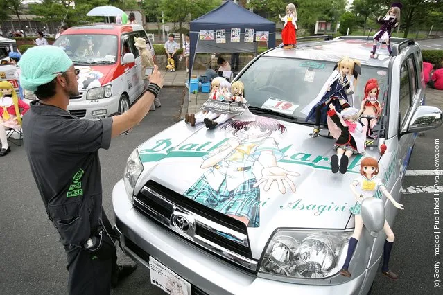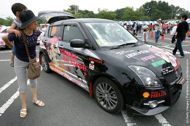 Photo: A visitor takes pictures of an anime-decorated «Itasha» car displayed during the “Moe Fes in Washimiya” at Washimiya Town Hall on July 18, 2009 in Washimiya, Saitama, Japan. Itasha, a word derived from “itai” (painful) and “sha” (car), are vehicles decorated with mostly female characters from Japanese manga, anime and video games. (Photo by Kiyoshi Ota/Getty Images)