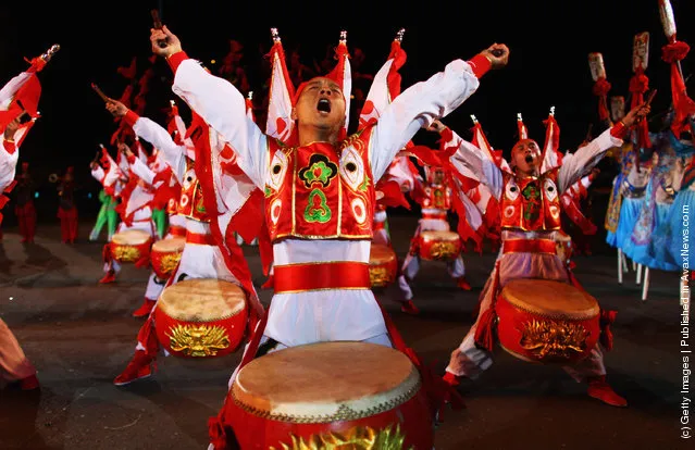 Entertainers from the She Huo cultural troupe rehearse for the Edinburgh Military Tattoo at Redford barracks on August 5, 2009 in Edinburgh, Scotland. (Photo by Jeff J Mitchell/Getty Images)