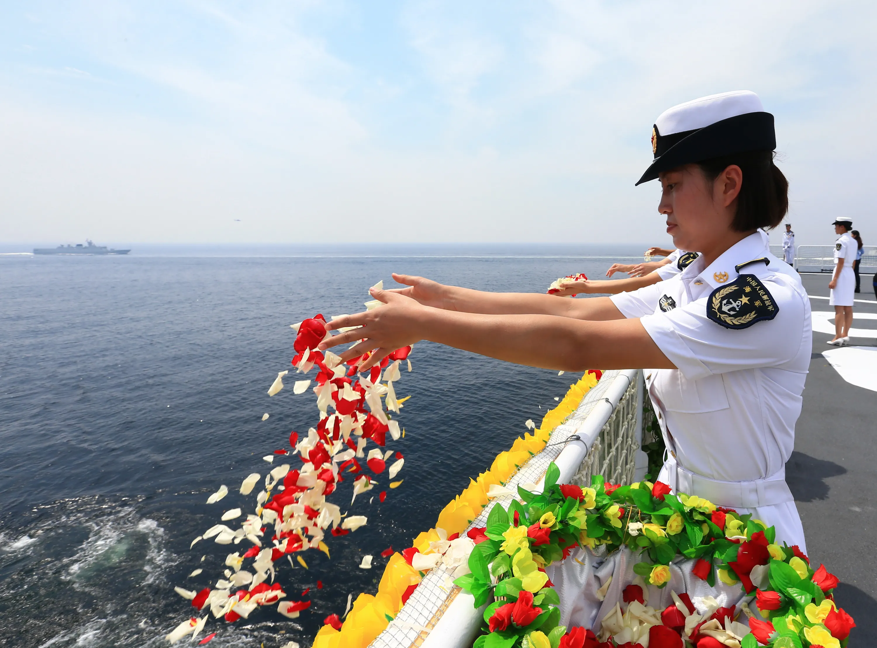 Chinese navy holds memorial ceremony for 120th anniversary of the first Sino-Japanese War on August 27, 2014 in Weihai, Shandong province of China. The First Sino-Japanese War was fought from August 1, 1894 to April 17, 1895. (Photo by ChinaFotoPress/ChinaFotoPress via Getty Images)