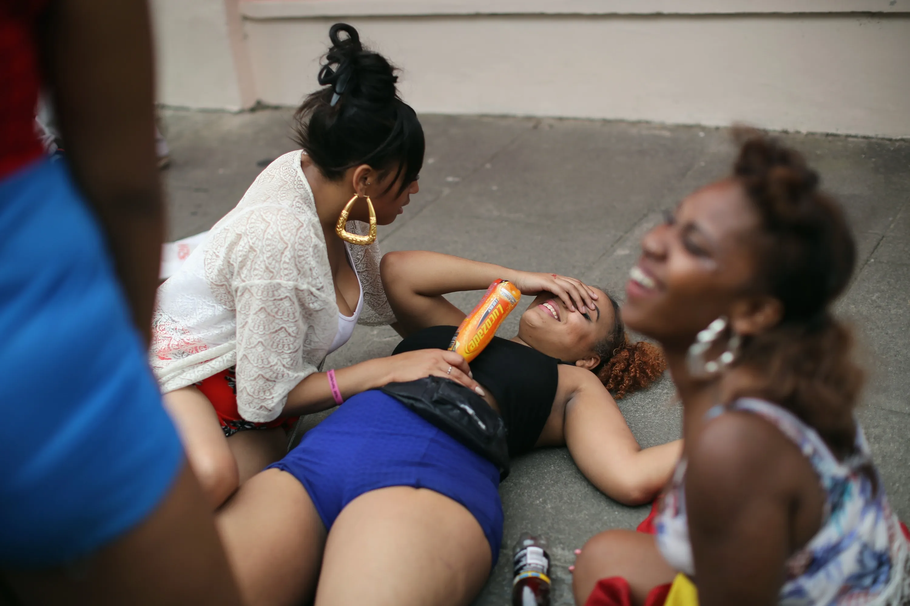 A group of girls lay in the road during the Notting Hill Carnival on August 24, 2014 in London, England. The Notting Hill Carnival is the largest street festival in Europe and was first held in 1964 by the Afro-Caribbean community. Over the bank holiday weekend the streets come alive to steel bands, colourful floats and costumed performers as members of the public flood into the area to join in the celebrations. (Photo by Dan Kitwood/Getty Images)