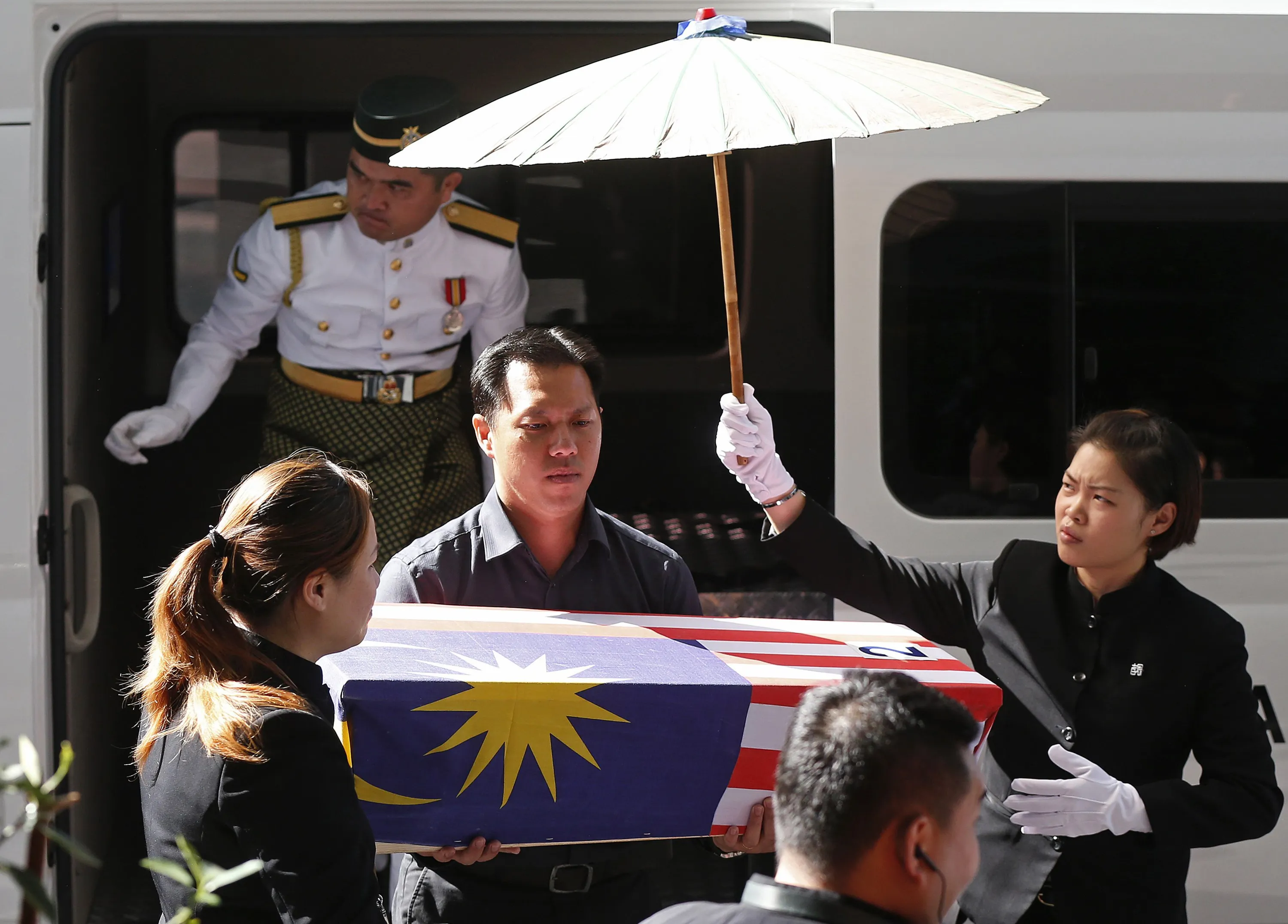 Lt Lee Vee Weng (C) carries the remains of his one-year-old son Benjamin Lee Jian Han, who was killed in the MH17 crash, into the Xiao En Bereavement Centre in Kuala Lumpur September 9, 2014. Malaysia Airlines (MAS) Flight MH17 crashed after being shot down over war-torn Ukraine on July 17, killing all 298 people on board. (Photo by Olivia Harris/Reuters)