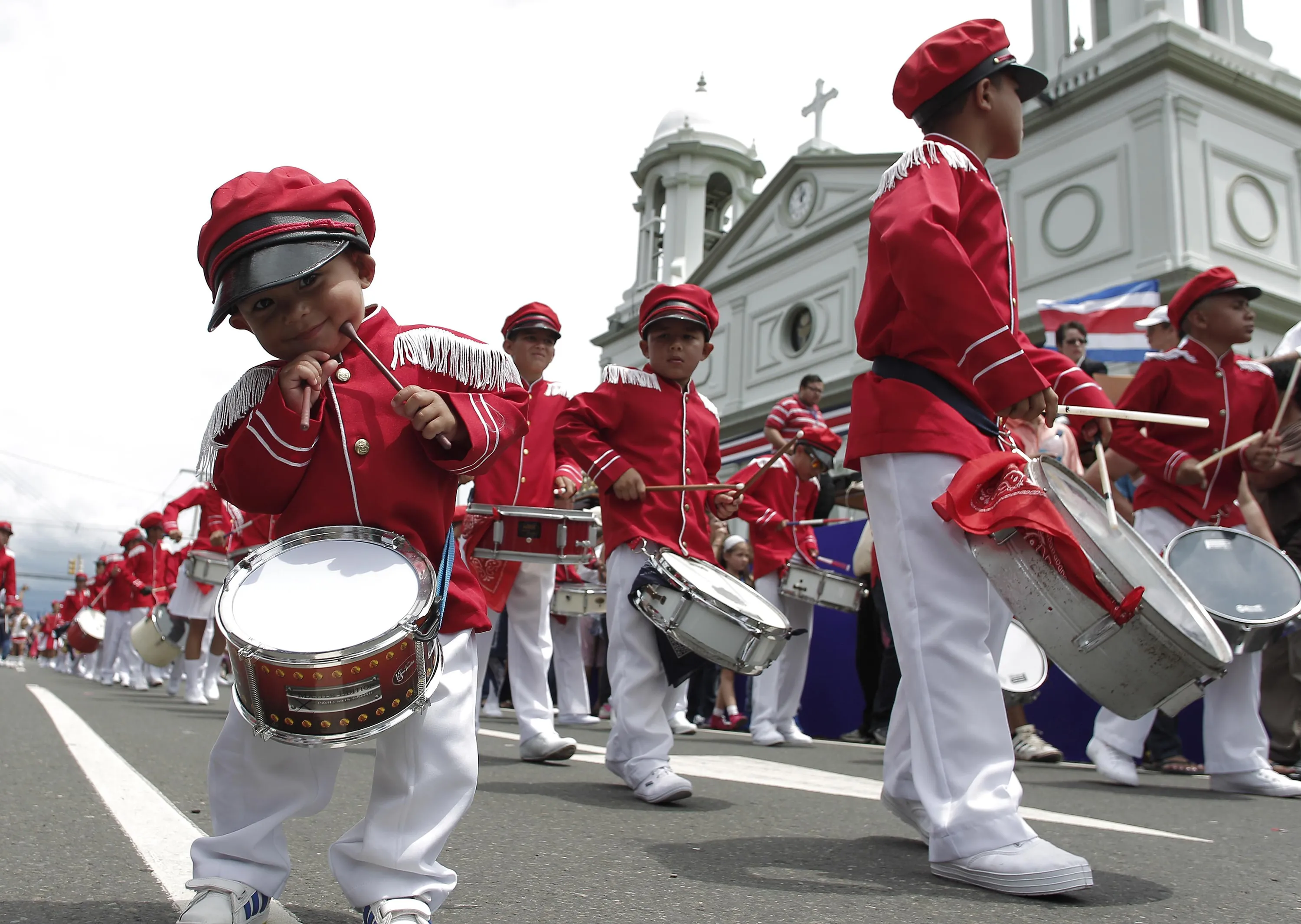 A child with his drum smiles as he walks near students performing during a parade commemorating Costa Rica's Independence Day in San Jose September 15, 2014. Schools and colleges participated in parades throughout the country to celebrate its 193rd anniversary of independence. (Photo by Juan Carlos Ulate/Reuters)