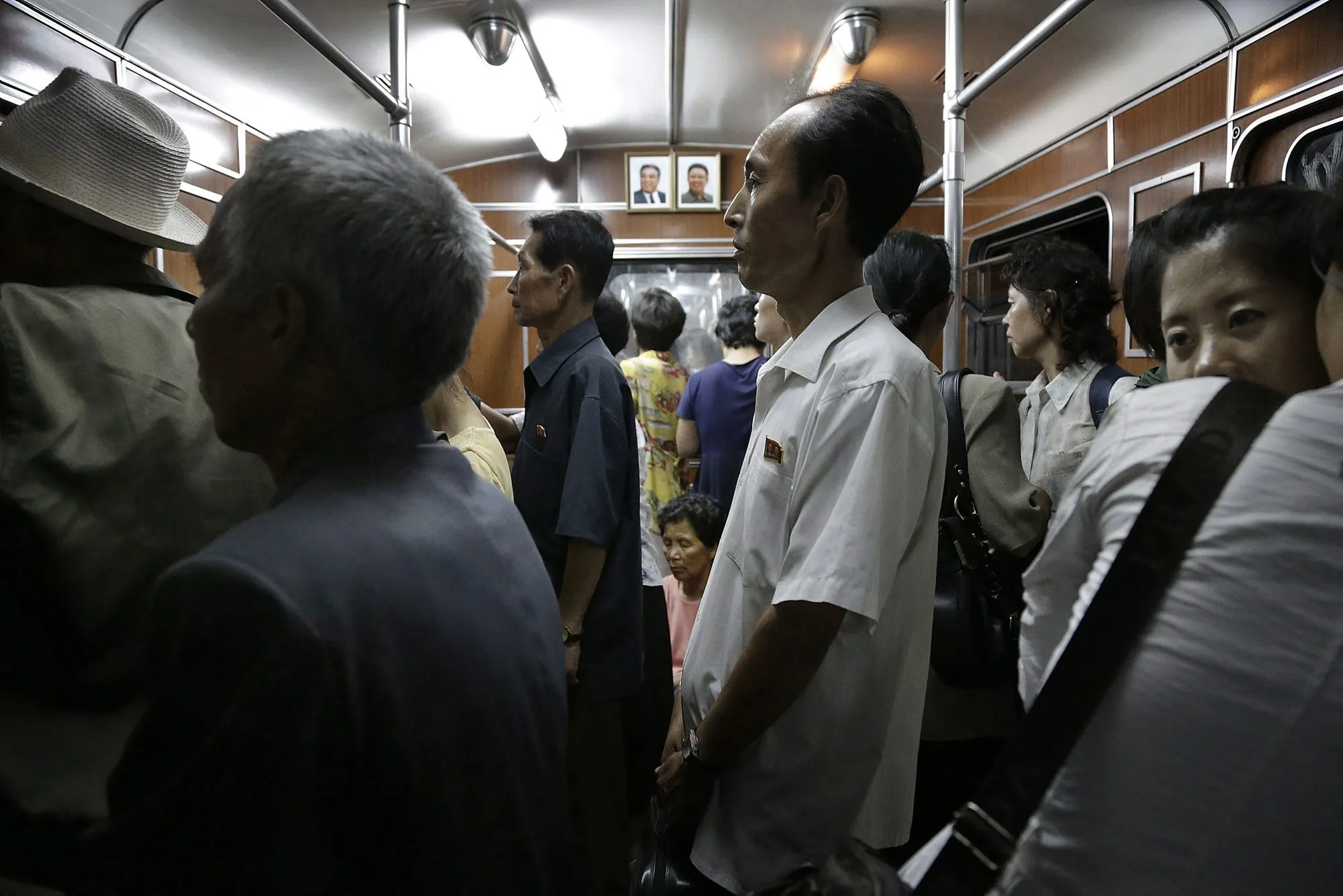 In this September 1, 2014, photo, North Korean commuters ride on a subway in Pyongyang, North Korea. Foreign visitors are usually only allowed to take one to two stops on Pyongyang's north-south Chollima subway line. (Photo by Wong Maye-E/AP Photo)