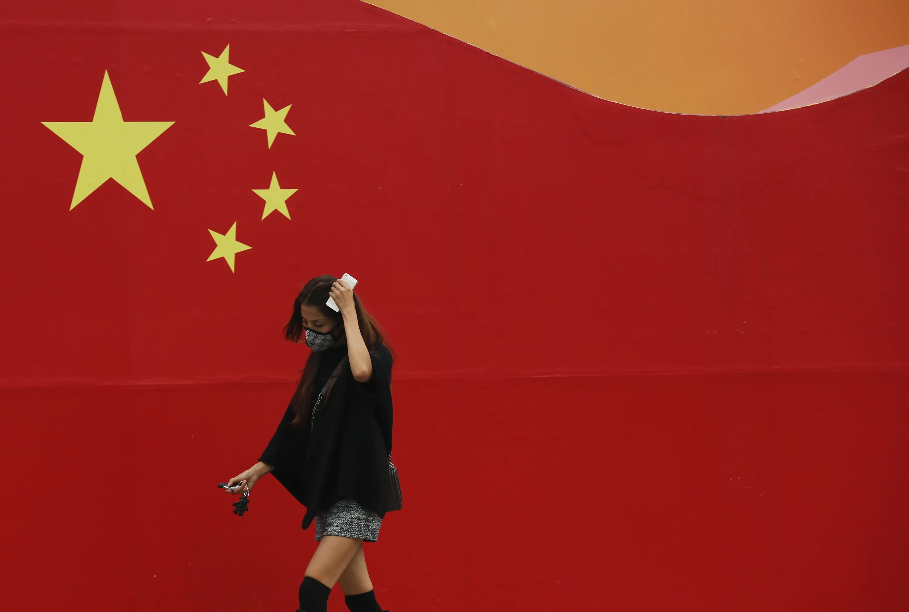 A woman wearing a mask walks past a wall painted with China's national flag in central Beijing, October 9, 2014. (Photo by Kim Kyung-Hoon/Reuters)