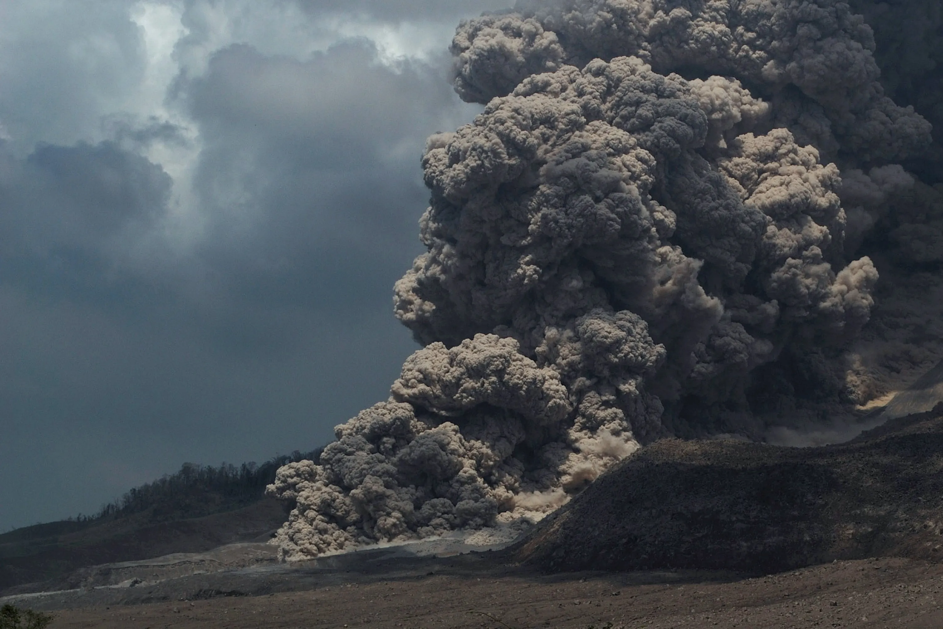 Super heated giant ash cloud spew from the crater of Mount Sinabung volcano threatening villages during an eruption on October 17, 2014 as seen from Simpang Empat district on Sumatra island. In February, Sinabung's eruption killed about 17 people and forced more than 33,000 others to flee their homes. (Photo by Sutanta Aditya/AFP Photo)