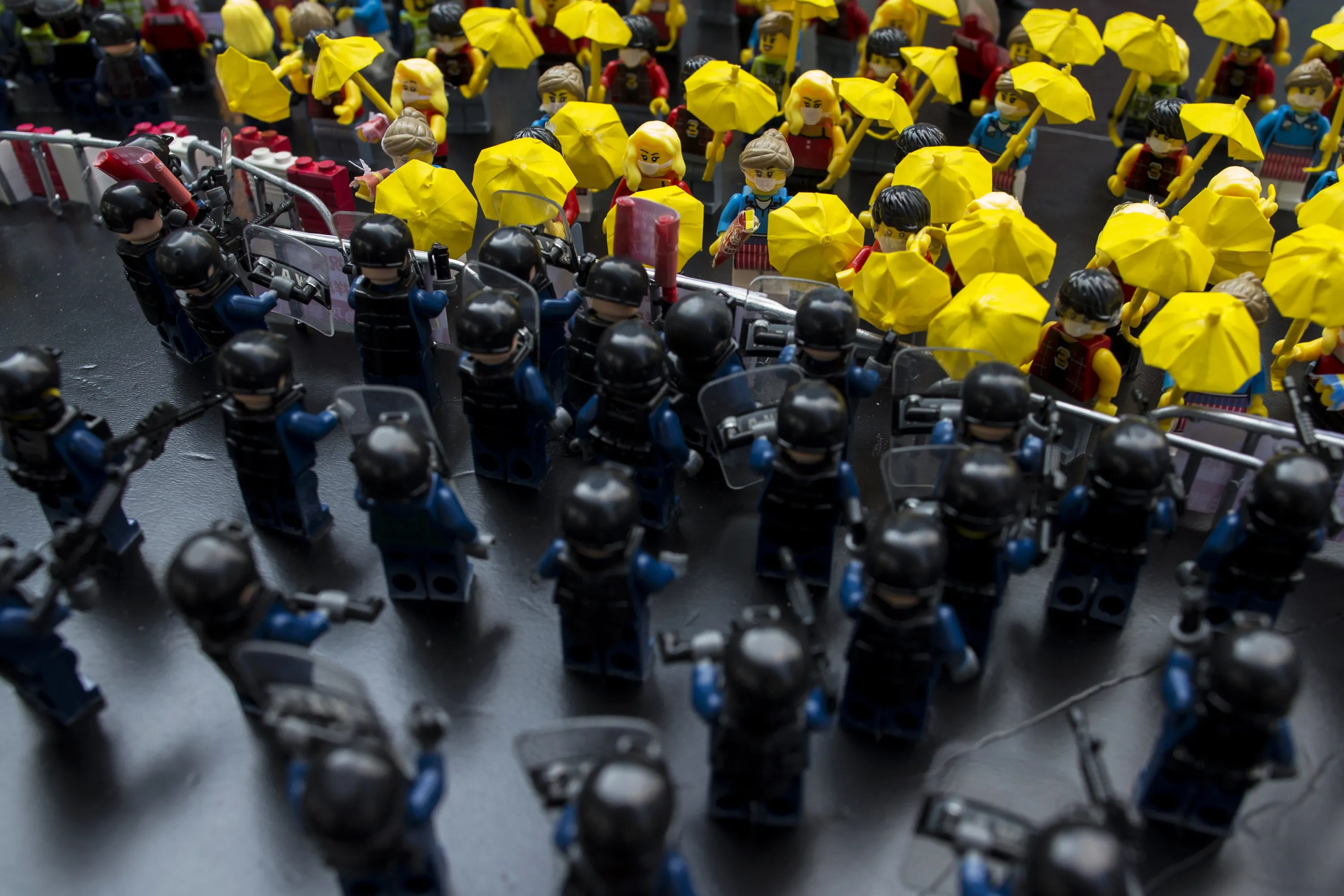 Toy Lego characters depicting a scene of protesters confronting riot police are seen on a table outside the government headquarters in Hong Kong October 20, 2014. A deepening sense of impasse gripped Hong Kong on Monday as pro-democracy protests entered their fourth week, with the government having limited options to end the crisis and demonstrators increasingly willing to confront police. (Photo by Tyrone Siu/Reuters)