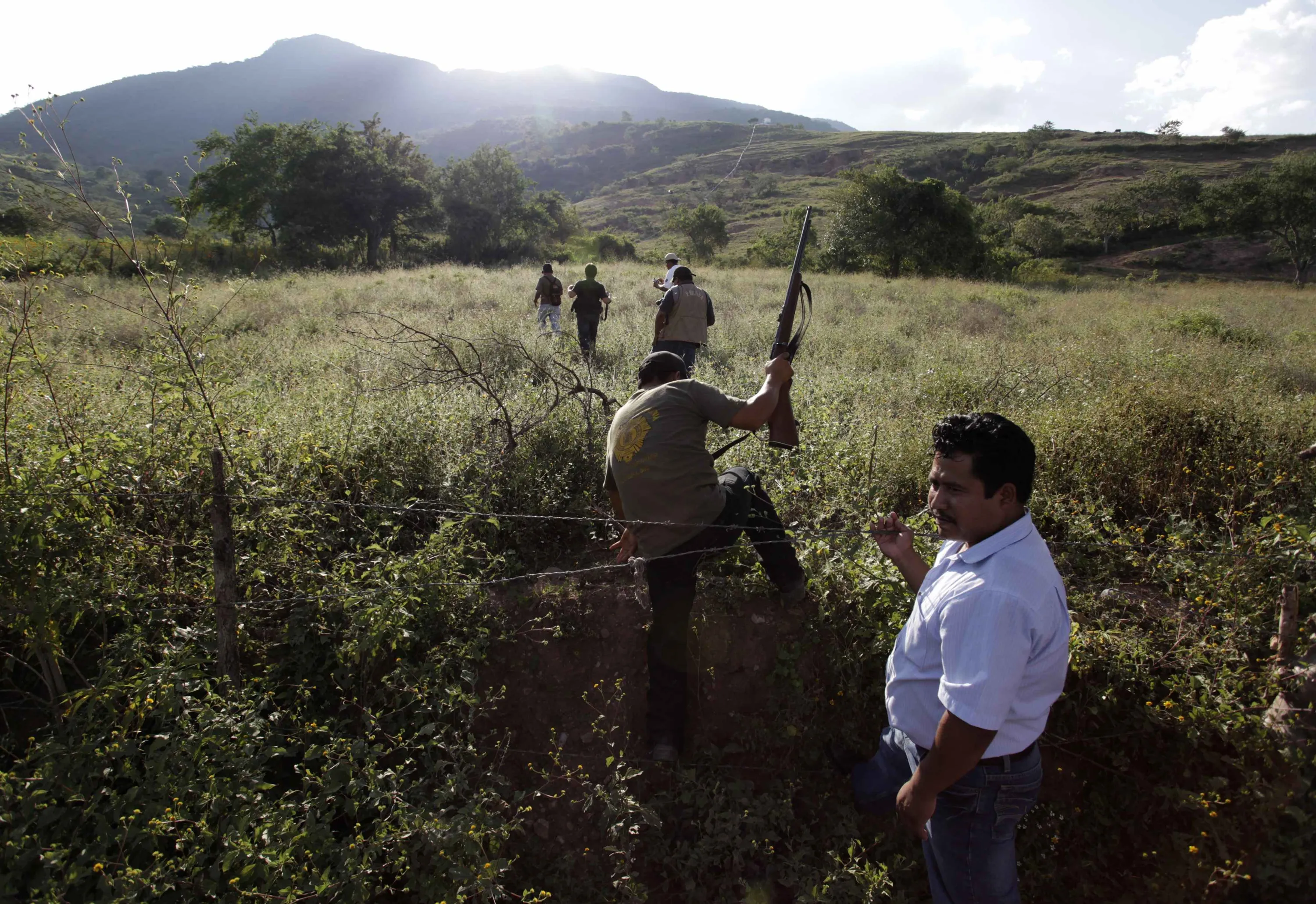 Vigilantes walk into a field where a man, accused of having raped several children, allegedly took them in Acatempa October 28, 2014. Vigilantes detained the man after one child stepped forward and told his father that the man had threatened to skin him if he would not go with him, according to local media. The man, who denies the charges, was convicted in a quick trial let by the vigilantes and then handed over to the authorities. (Photo by Daniel Becerril/Reuters)