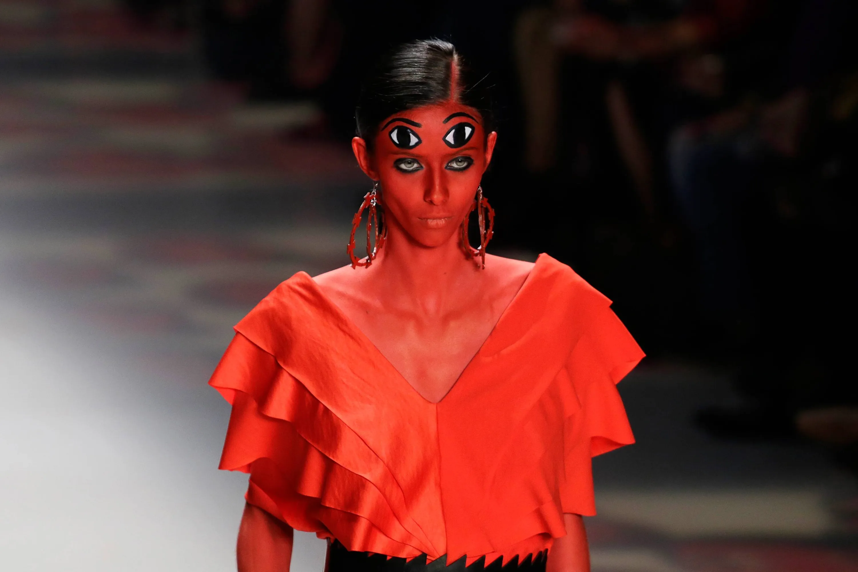 A model wears a creation from the Ronaldo Fraga Winter collection during the Sao Paulo Fashion Week in Sao Paulo, Brazil, Wednesday, November 5, 2014. (Photo by Nelson Antoine/AP Photo)