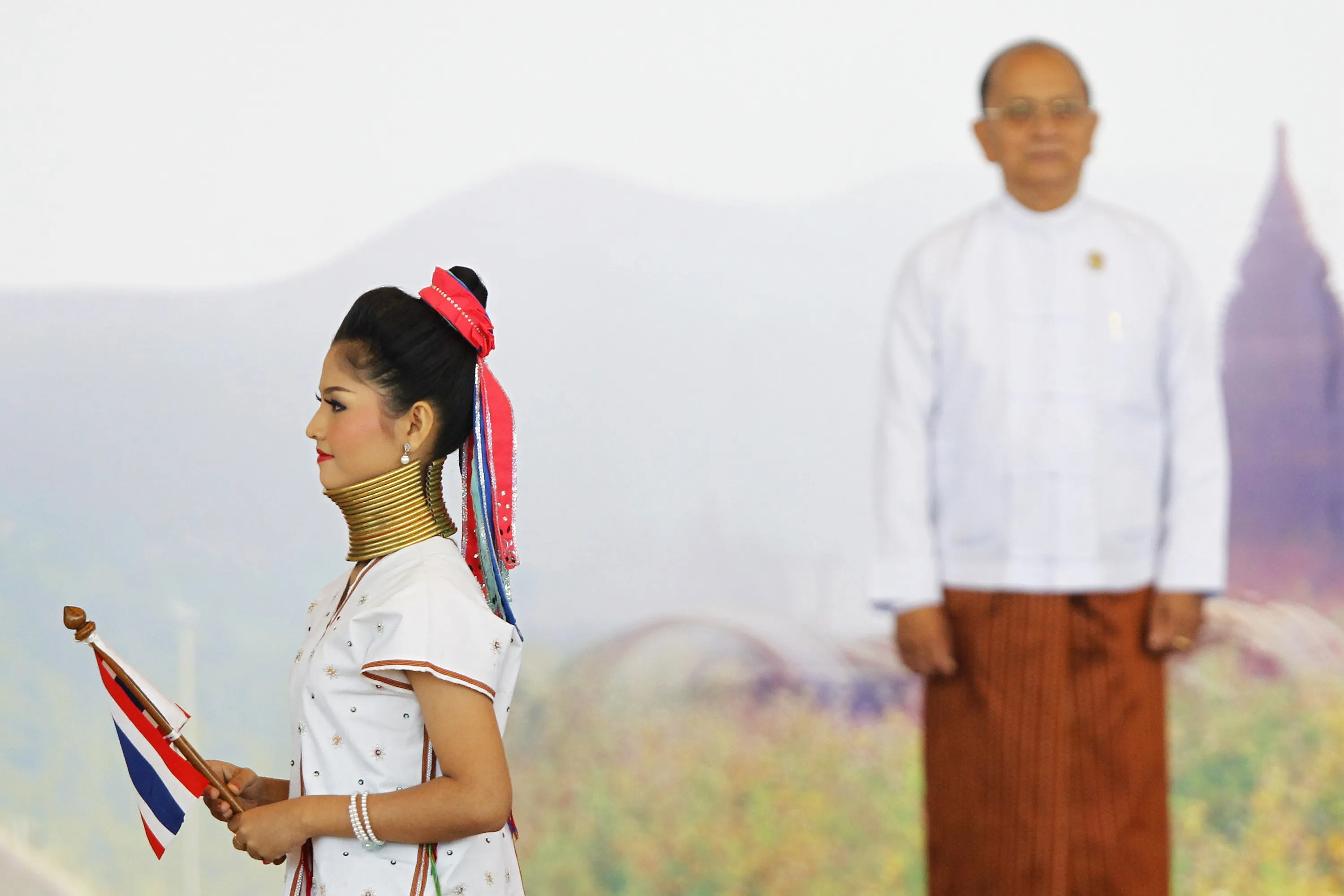 A girl wearing traditional clothes walks in front of Myanmar's President Thein Sein as he welcomes other heads of states before the East Asia Summit (EAS) plenary session during the ASEAN Summit in Naypyitaw November 13, 2014. (Photo by Soe Zeya Tun/Reuters)