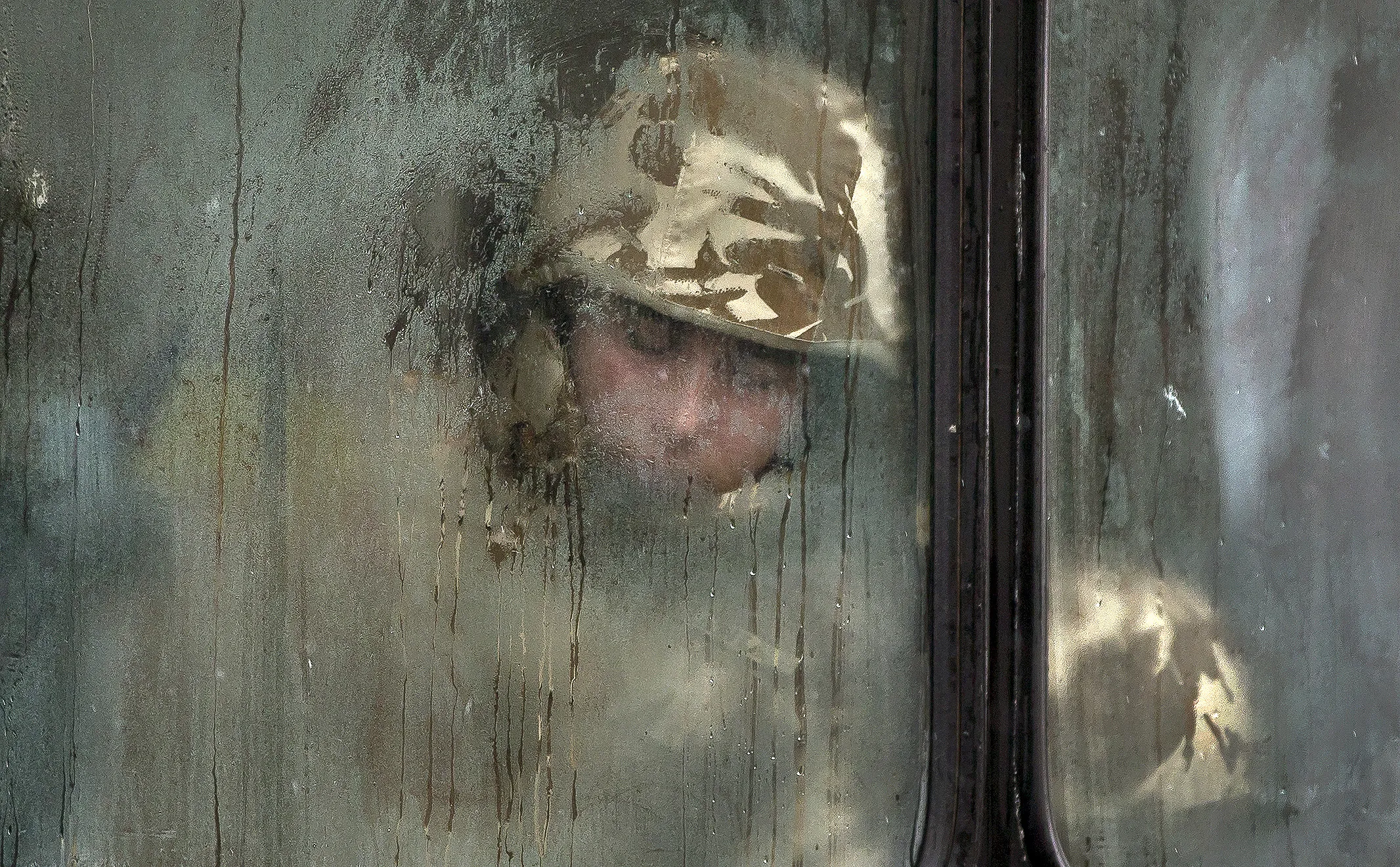 A Romanian soldier sleeps on a bus before taking part in a military parade to mark Romania's national day in Bucharest, Romania, Monday December 1, 2014. Romanians braved the cold weather to watch the traditional armed forces parade, held outside the Palace of Parliament formerly the House of the People, built during the rule of communist dictator Nicolae Ceausescu. (Photo by Vadim Ghirda/AP Photo)