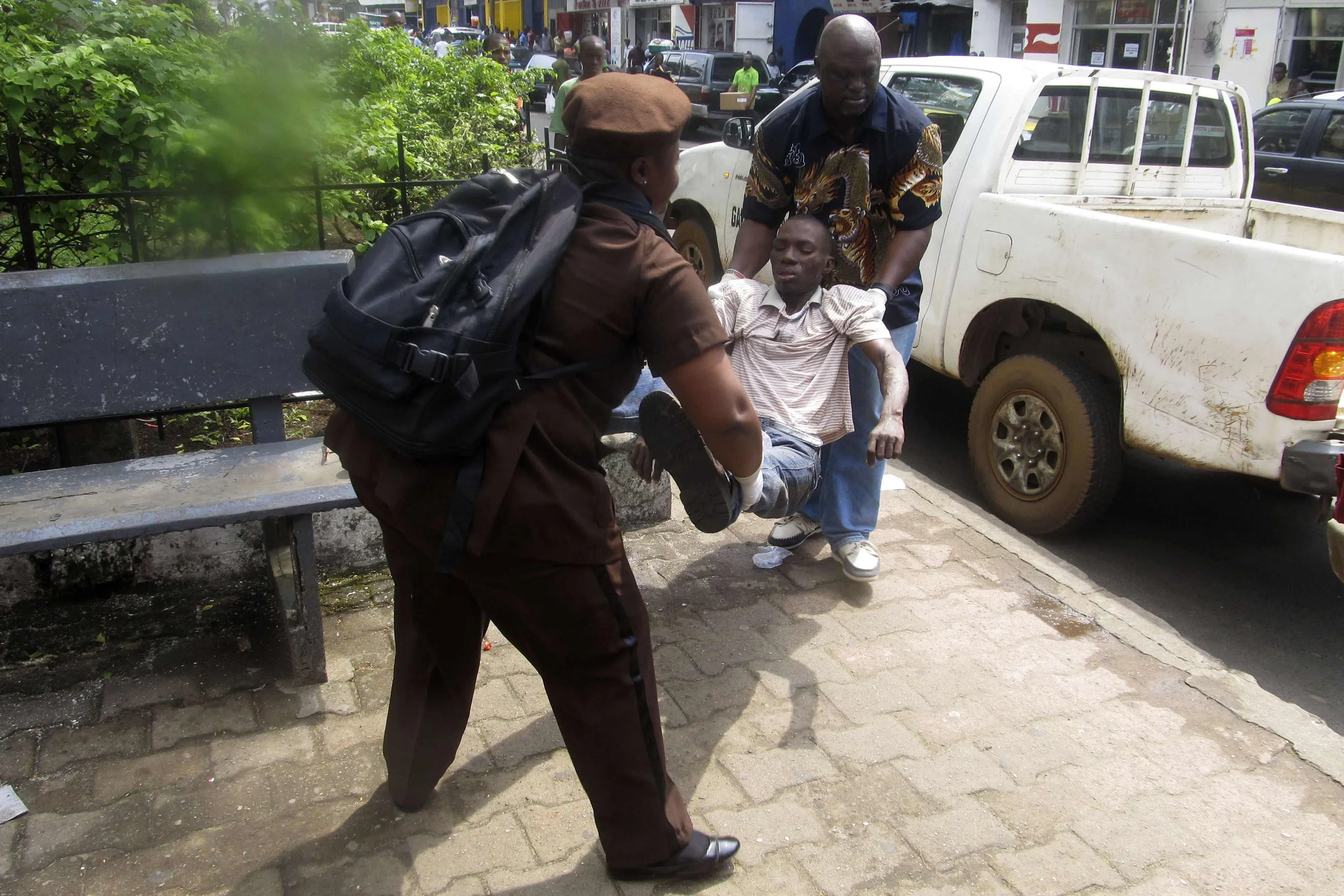 A sick man is carried away to be tested for Ebola after collapsing on a street in Monrovia December 9, 2014. The death toll from the Ebola outbreak in West Africa has risen to 6,331 in the three worst hit countries, with Sierra Leone overtaking Liberia as the country with the highest number of cases, the World Health Organization says. (Photo by James Giahyue/Reuters)