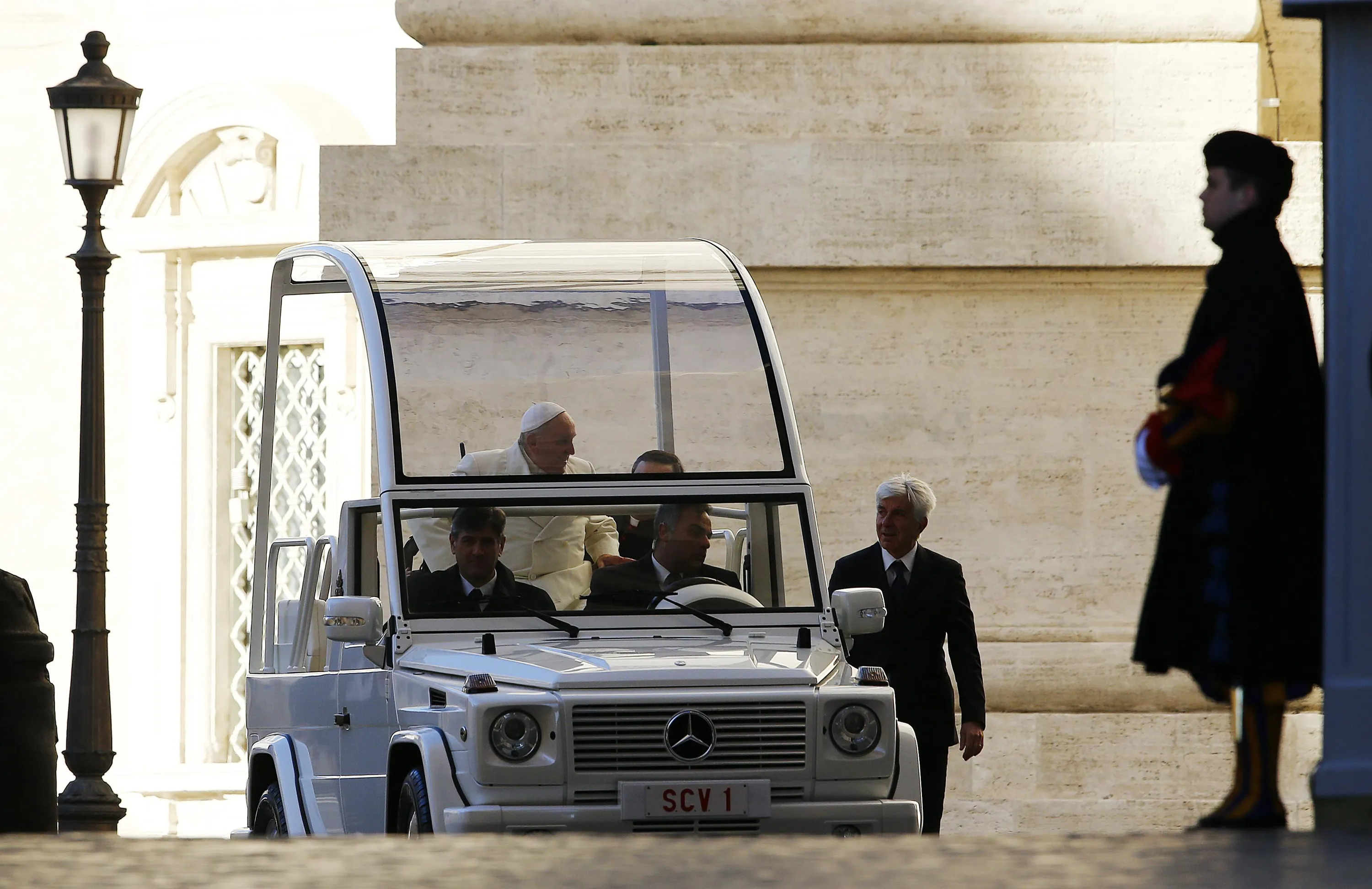 Pope Francis arrives to lead his Wednesday general audience in Saint Peter's square at the Vatican December 10, 2014. (Photo by Stefano Rellandini/Reuters)