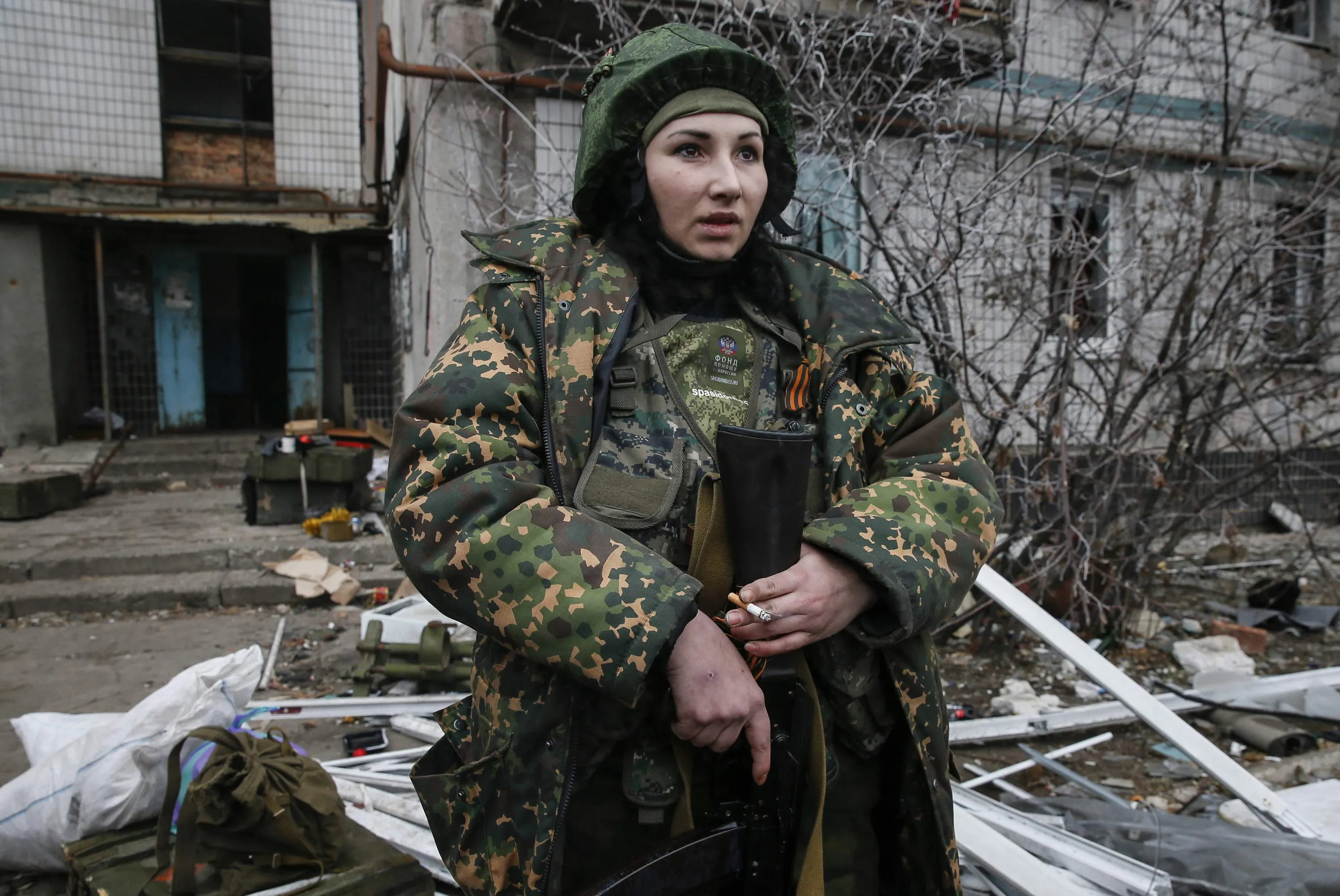 A pro-Russian separatist stands guard in front of a building damaged during fighting between pro-Russian rebels and Ukrainian government forces near Donetsk Sergey Prokofiev International Airport, eastern Ukraine, December 16, 2014. (Photo by Maxim Shemetov/Reuters)