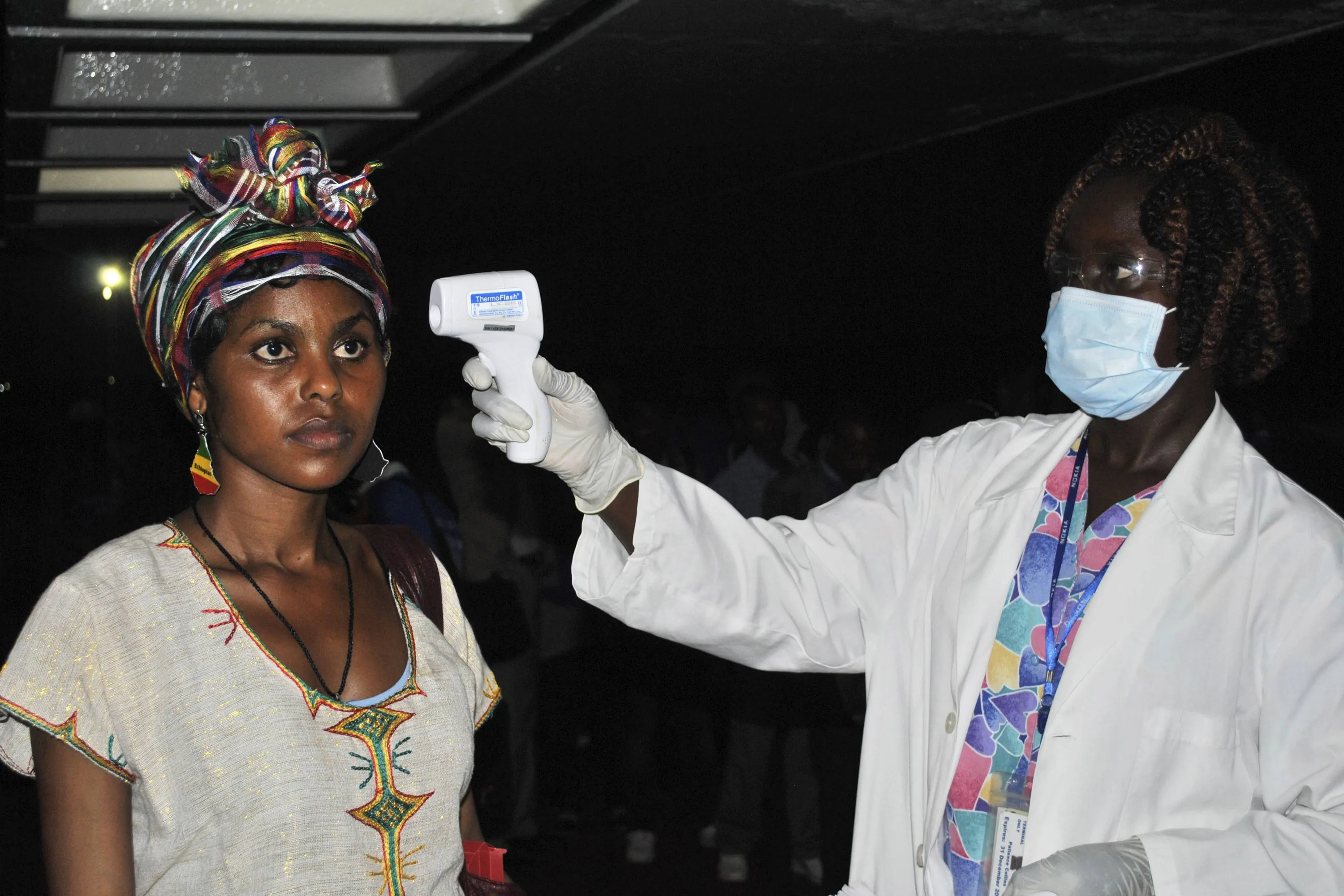 An Ethiopian health worker has her temperature taken upon arrival at Roberts airport outside Monrovia, Liberia, December 16, 2014. Scores of Ethiopian health workers arrived in Liberia on Tuesday to bolster the response to an Ebola outbreak that the government says it wants to stamp out before Christmas. The 87 doctors and nurses will join an African Union (AU) mission against the worst Ebola outbreak on record, which has killed more than 6,800 people in Liberia and neighboring Sierra Leone and Guinea. (Photo by James Giahyue/Reuters)