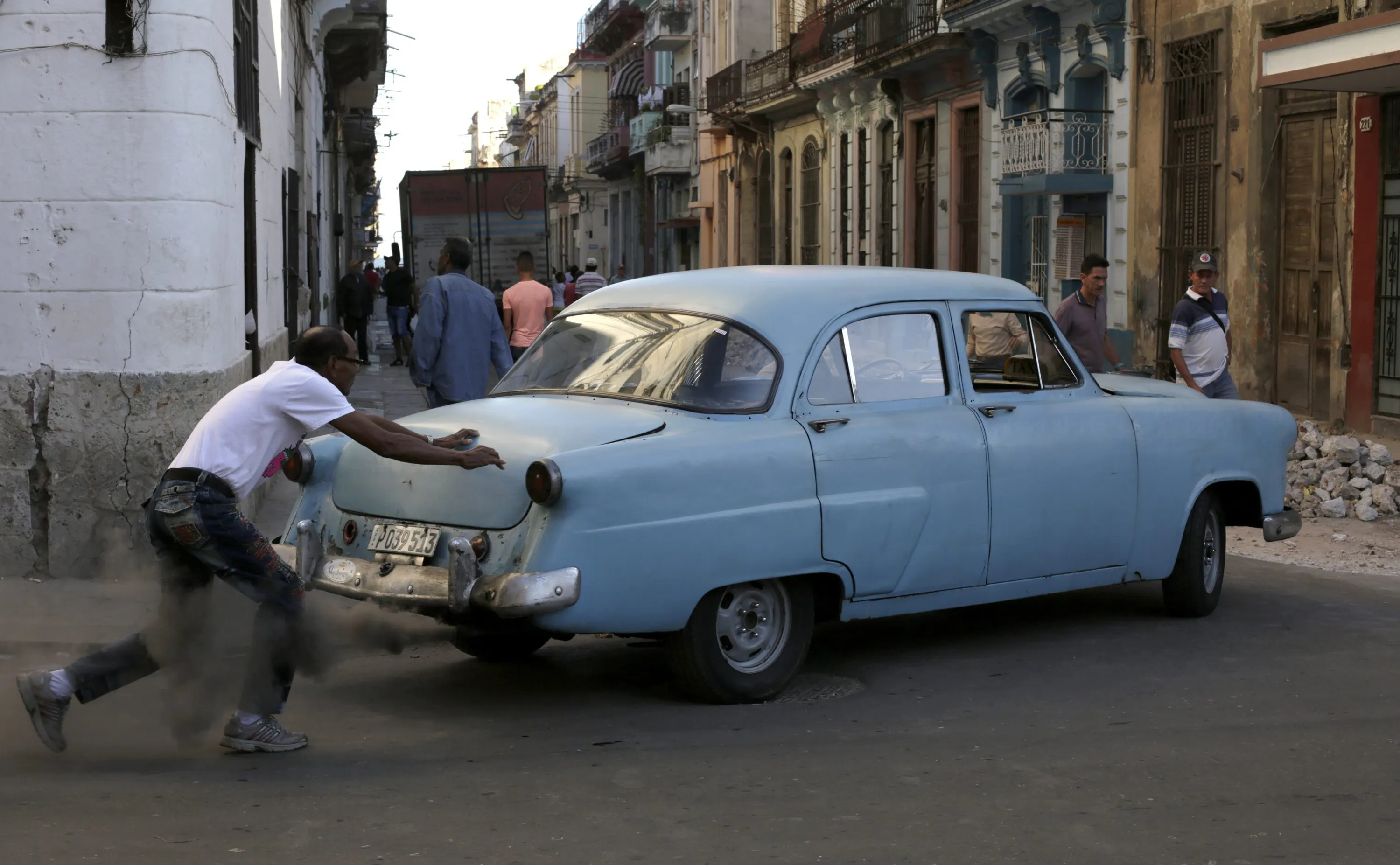 A man pushes a car in Havana December 19, 2014. (Photo by Enrique De La Osa/Reuters)