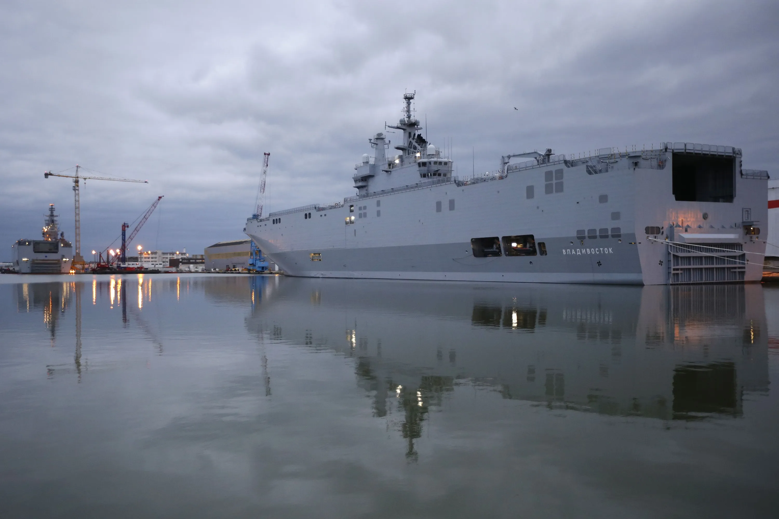 The two Mistral-class helicopter carriers “Sevastopol” (L) and “Vladivostok” are seen at the STX Les Chantiers de l'Atlantique shipyard site in Saint-Nazaire, western France, December 23, 2014. (Photo by Stephane Mahe/Reuters)