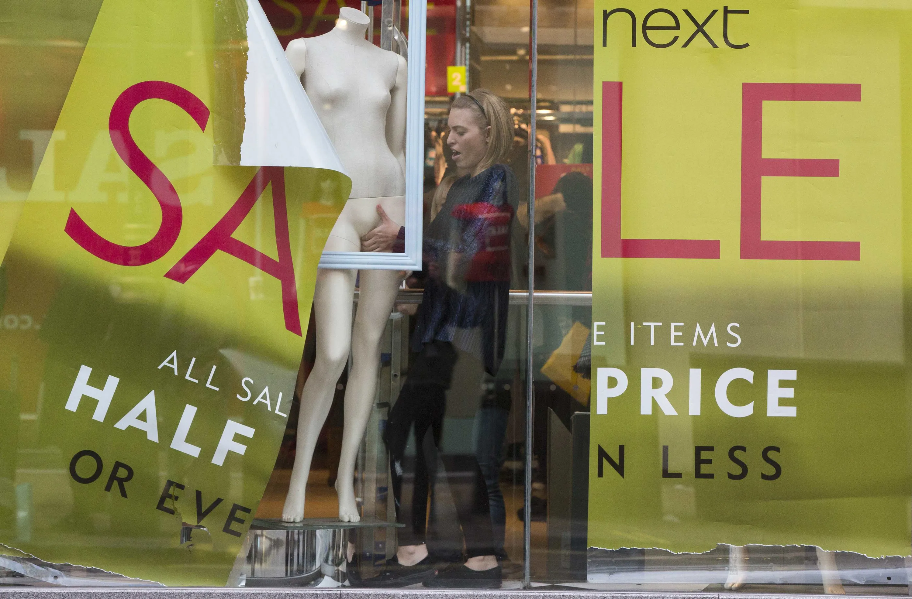 A shop assistant creates a window display in a Next store in central London December 30, 2014. British clothing retailer Next's sales rose 2.9 percent in the run up to Christmas mostly due to online and catalogue purchases, hitting the upper end of its predictions and it said full-year profit would rise by about 11.5 percent. (Photo by Neil Hall/Reuters)