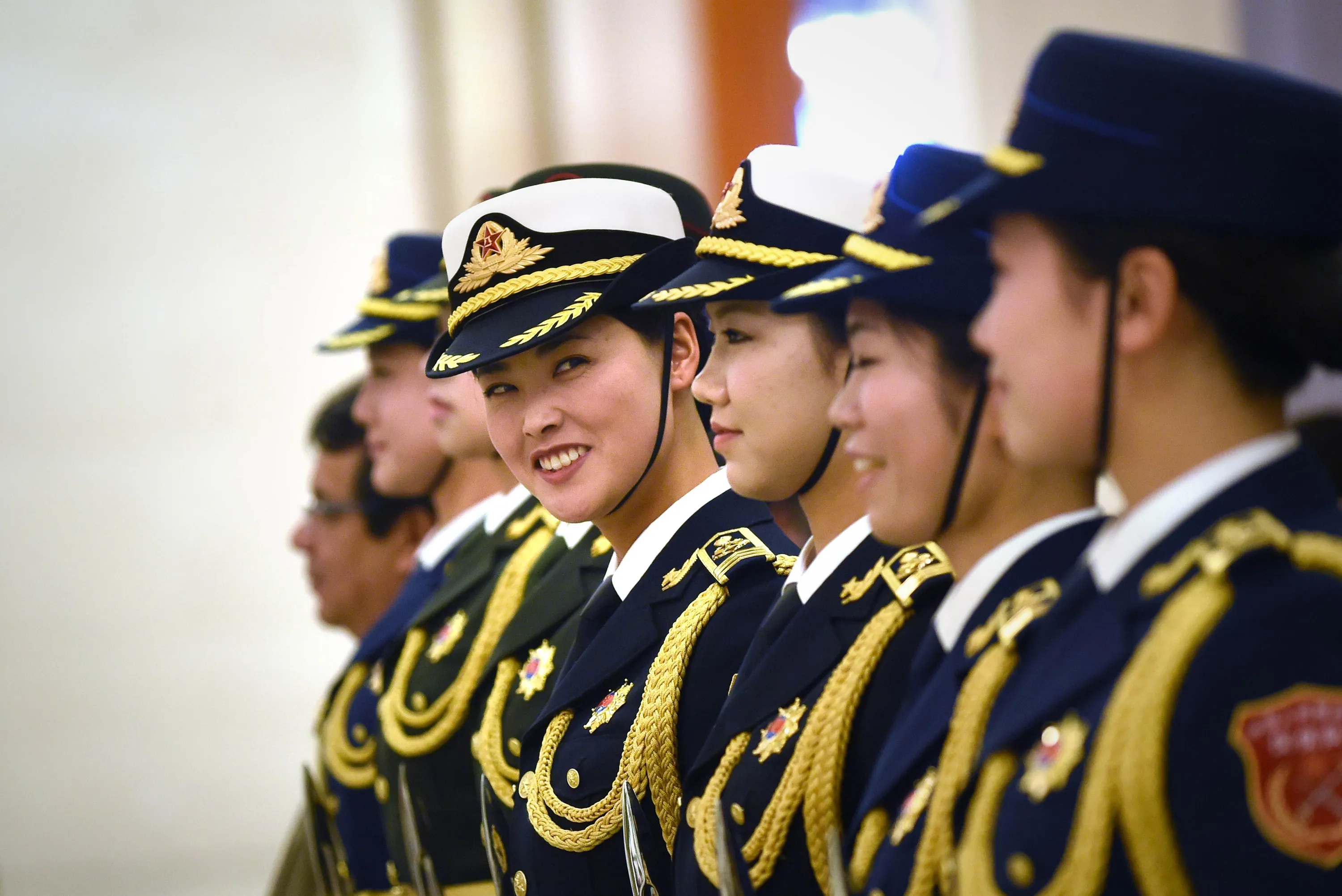Chinese honour guards prepare for the arrival of Ecuador's President Rafael Correa and Chinese President Xi Jinping during a welcoming ceremony at the Great Hall of the People in Beijing on January 7, 2015. Correa is on a visit to China from January 5 to 9. (Photo by Wang Zhao/AFP Photo)