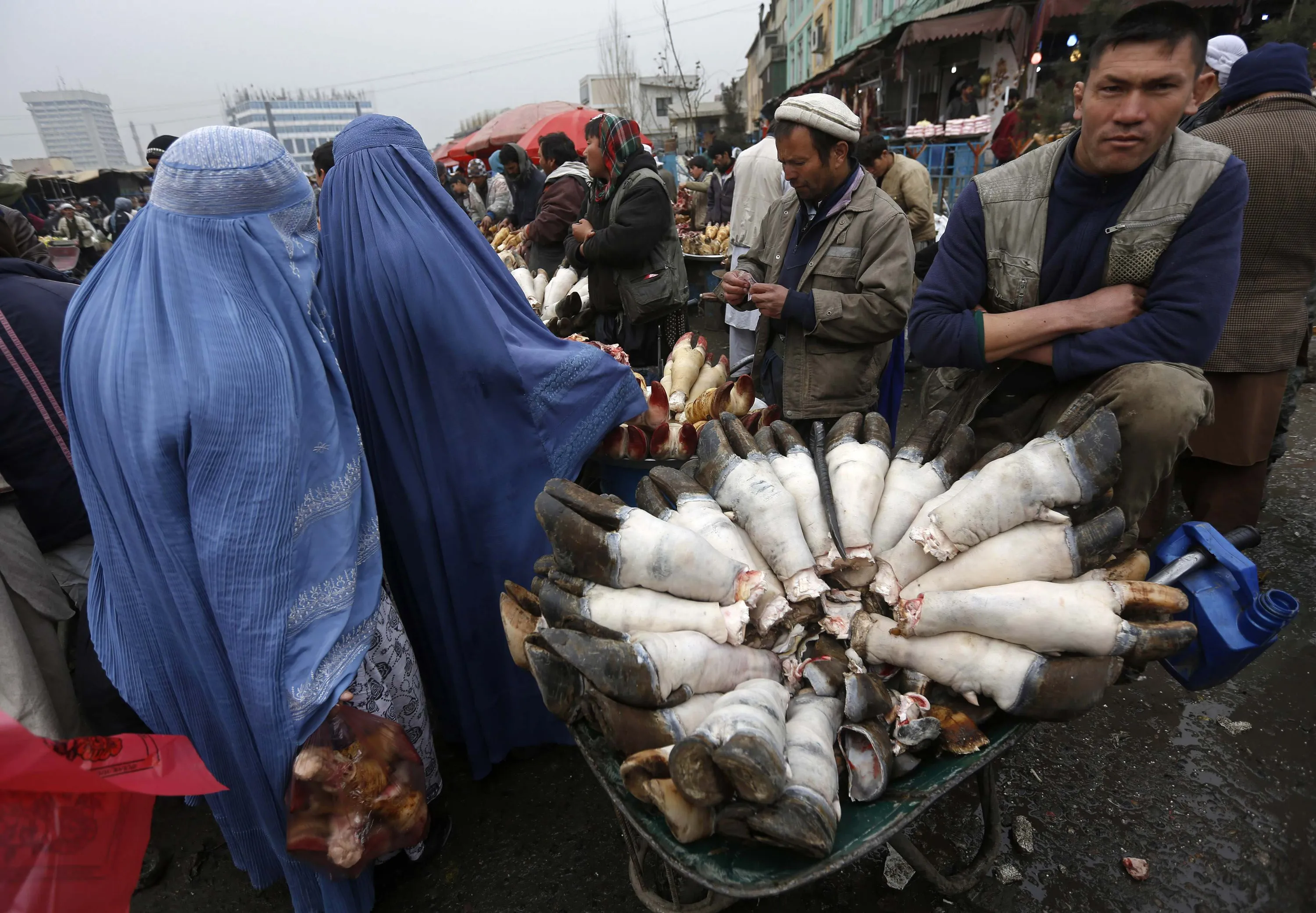 An Afghan butcher sells buffalo legs along a street in Kabul January 12, 2015. (Photo by Omar Sobhani/Reuters)